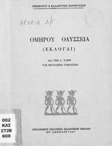 Σχολικό εγχειρίδιο Αρχαίων Ελληνικών της Δ' Γυμνασίου. Το σχολικό εγχειρίδιο περιέχει την Οδύσσεια του Ομήρου. Στην αρχή έχει πληροφορίες για το μυκηναϊκό πολιτισμό και γενικότερα τους Αχαιούς. Μετά ...