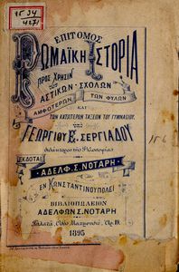 Σχολικό εγχειρίδιο Ιστορίας για τα Γυμνάσια και τα Αστικά Σχολεία περιλαμβάνει την περίοδο από την ίδρυση της Ρώμης ως την κατάλυση του δυτικού ρωμαϊκού κράτους.
