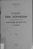 Μαθητικό βοήθημα που περιλαμβάνει λύσεις ασκήσεων για την εφαρμογή χημικών νόμων (Gay-Lussac, Boyle-Mariotte), τον υπολογισμό χημικών αντιδράσεων, εμπειρικών και μοριακών τύπων καθώς και τον υπολογισμό όγκου, ...