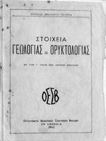 Σχολικό εγχειρίδιο Γεωλογίας/Ορυκτολογίας για την Γ΄ τάξη των Αστικών Σχολείων χωρισμένο σε χθονογραφία, δυναμική και ιστορική γεωλογία και γενική και ειδική ορυκτολογία.
