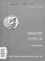 Σχολικό εγχειρίδιο Αρχαίων Ελληνικών Γ΄ Γυμνασίου που περιλαμβάνει εισαγωγή στη ζωή και το έργο του Ηρόδοτου, αποσπάσματα από την Ιστορία του, ερμηνευτικές σημειώσεις και τοπογραφικούς πίνακες με εικόνες και ...