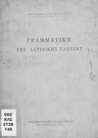 Σχολικό εγχειρίδιο Λατινικών Γυμνασίου που περιλαμβάνει γραμματική και συντακτικό και είναι χωρισμένο σε φθογγολογικό, τυπολογικό και ετυμολογικό μέρος.