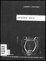 Σχολικό εγχειρίδιο Λατινικών για τη ΣΤ΄ Γυμνασίου που περιέχει βιογραφικό σημείωμα του Οράτιου, εισαγωγικά σχόλια, κείμενο και ερμηνευτικές σημειώσεις. Φέρει το σύμβολο της δικτατορίας.