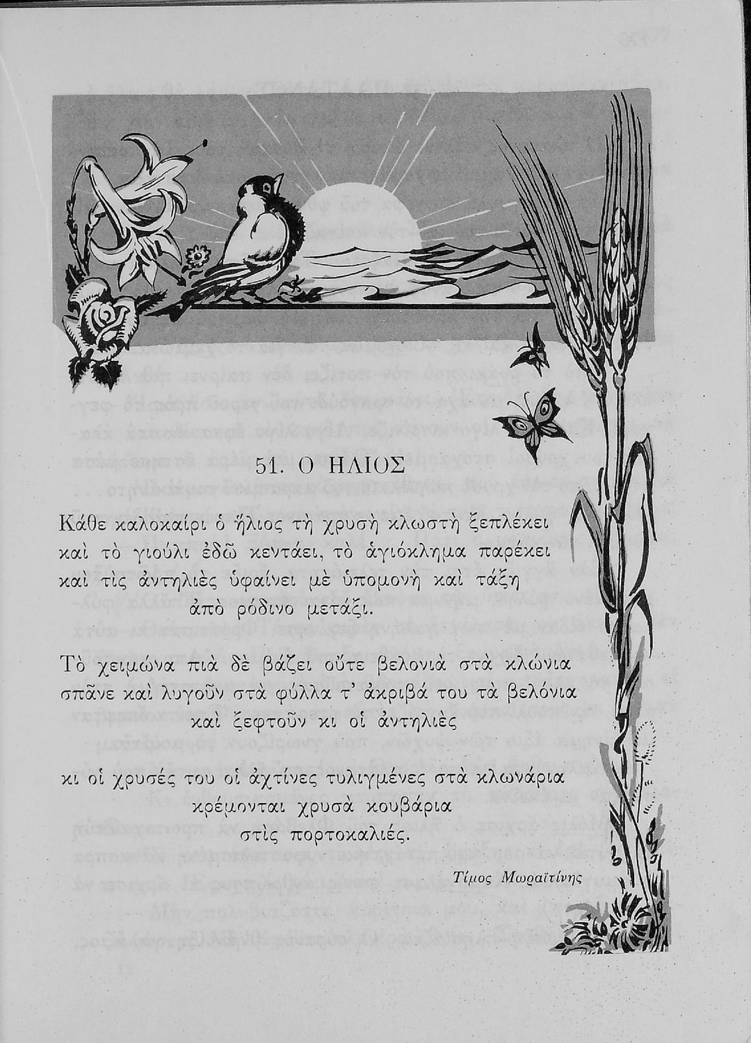Αναγνωστικό Ε΄ Δημοτικού που περιέχει κείμενα εμπνευσμένα από την εθνική, κοινωνική και οικογενειακή ζωή και την ελληνική φύση, μυθολογία και ιστορία. Φέρει το σύμβολο της δικτατορίας.