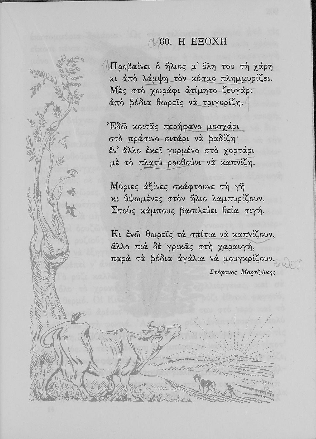 Αναγνωστικό Ε΄ Δημοτικού που περιέχει κείμενα εμπνευσμένα από την εθνική, κοινωνική και οικογενειακή ζωή και την ελληνική φύση, μυθολογία και ιστορία. Φέρει το σύμβολο της δικτατορίας.