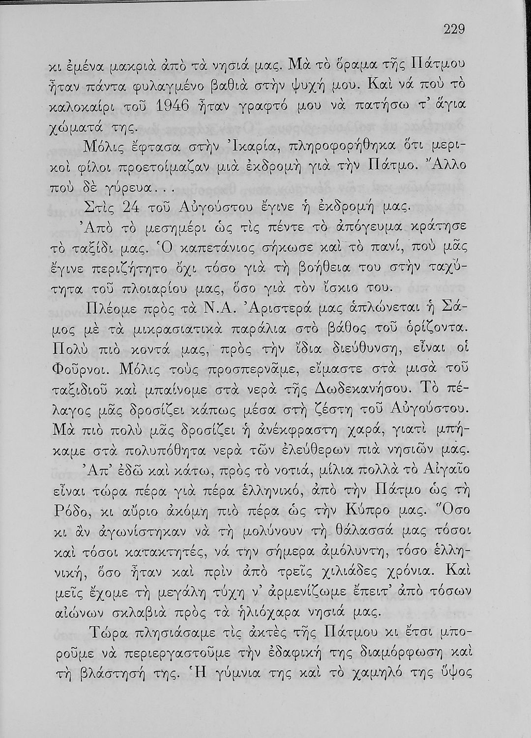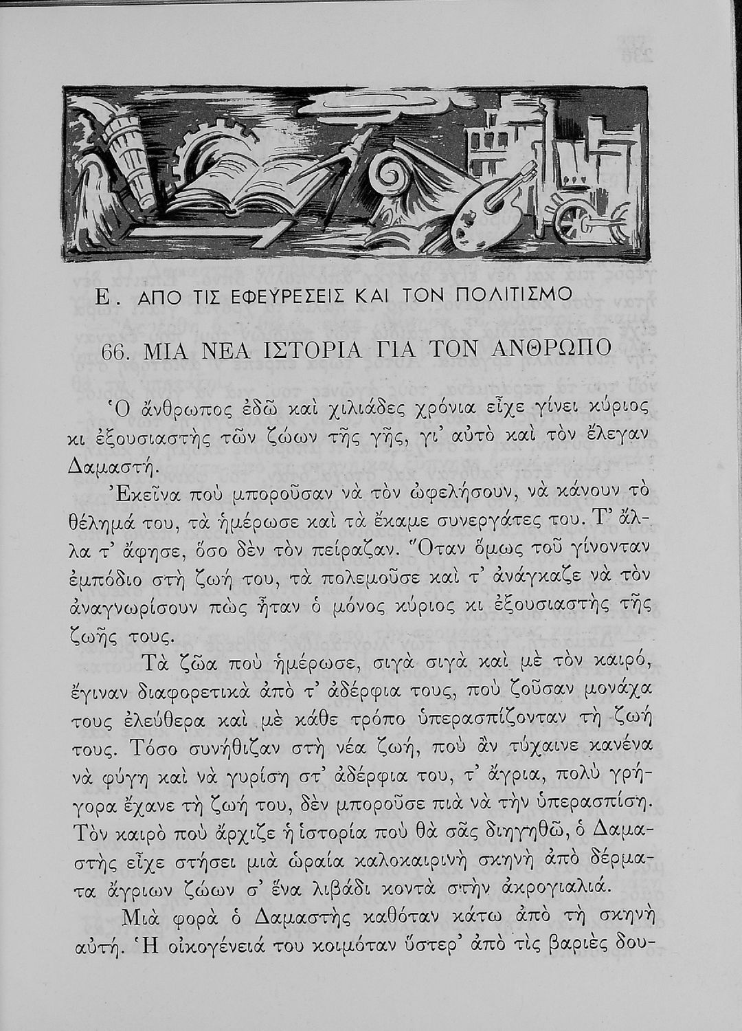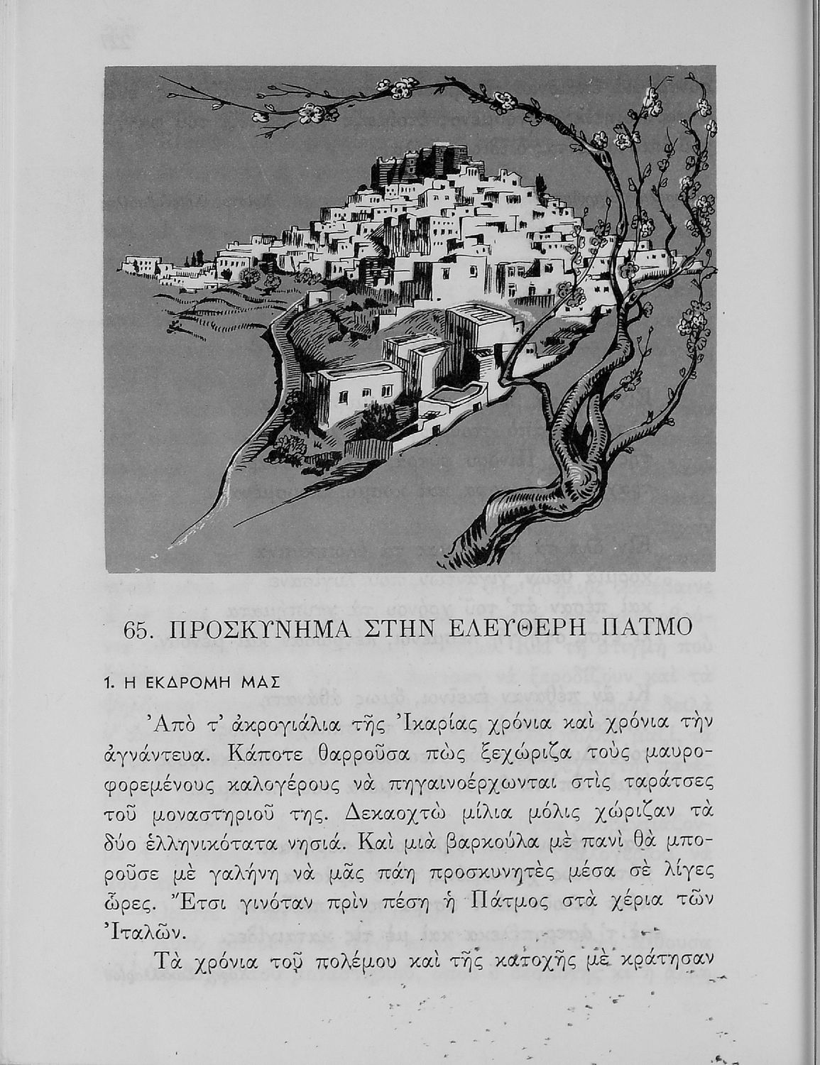 Αναγνωστικό Ε΄ Δημοτικού που περιέχει κείμενα εμπνευσμένα από την εθνική, κοινωνική και οικογενειακή ζωή και την ελληνική φύση, μυθολογία και ιστορία. Φέρει το σύμβολο της δικτατορίας.