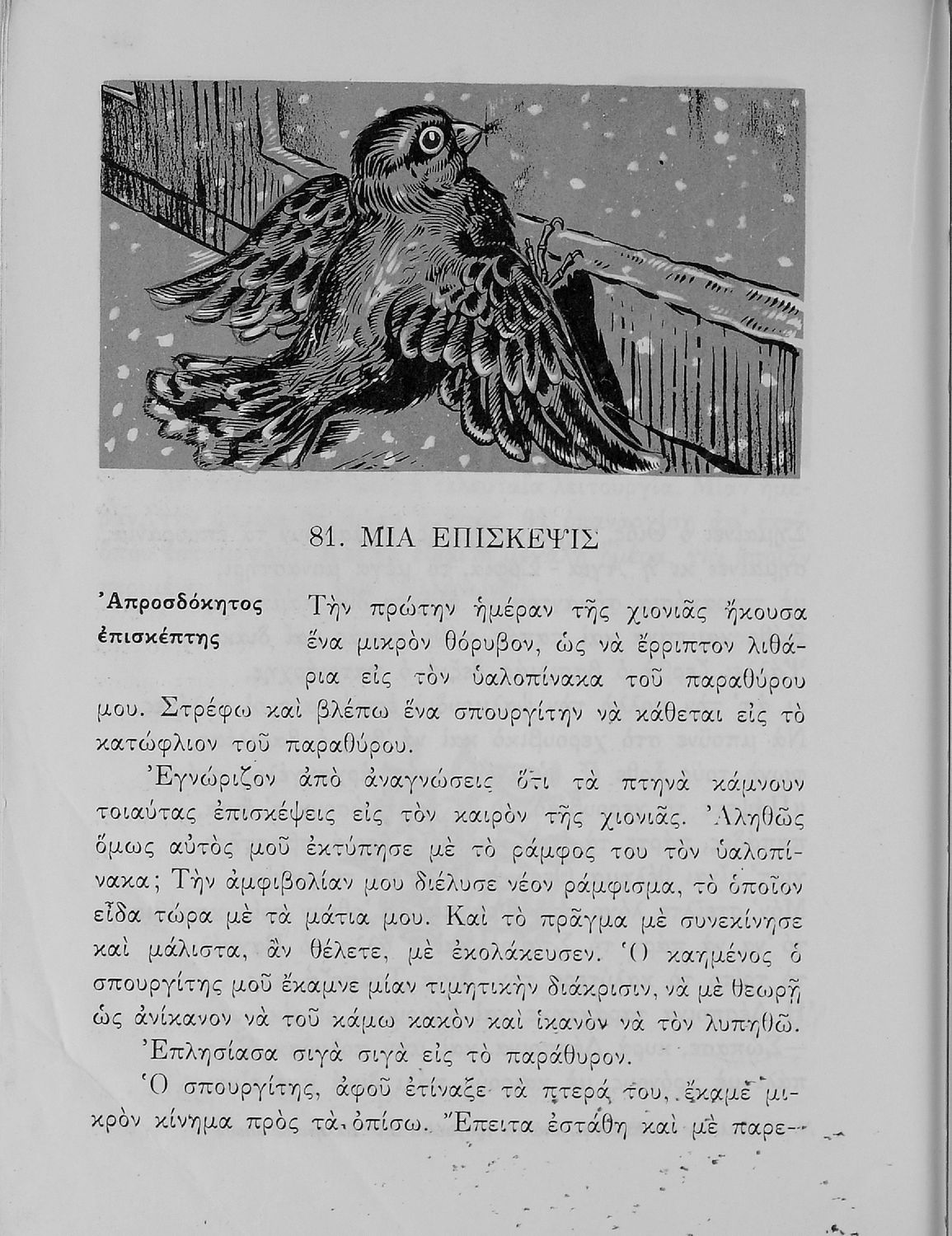 Αναγνωστικό Ε΄ Δημοτικού που περιέχει πεζά και ποιήματα εμπνευσμένα από τη θρησκευτική, εθνική, κοινωνική ζωή καθώς και από τις ασχολίες των Ελλήνων, την αρχαία και σύγχρονη ελληνική ιστορία και τον πολιτισμό.