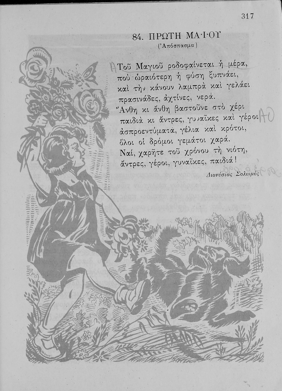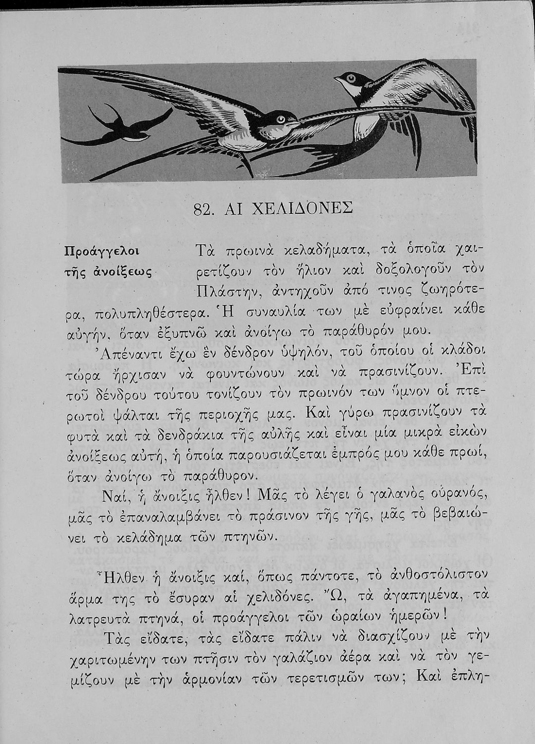 Αναγνωστικό Ε΄ Δημοτικού που περιέχει κείμενα εμπνευσμένα από την εθνική, κοινωνική και οικογενειακή ζωή και την ελληνική φύση, μυθολογία και ιστορία. Φέρει το σύμβολο της δικτατορίας.