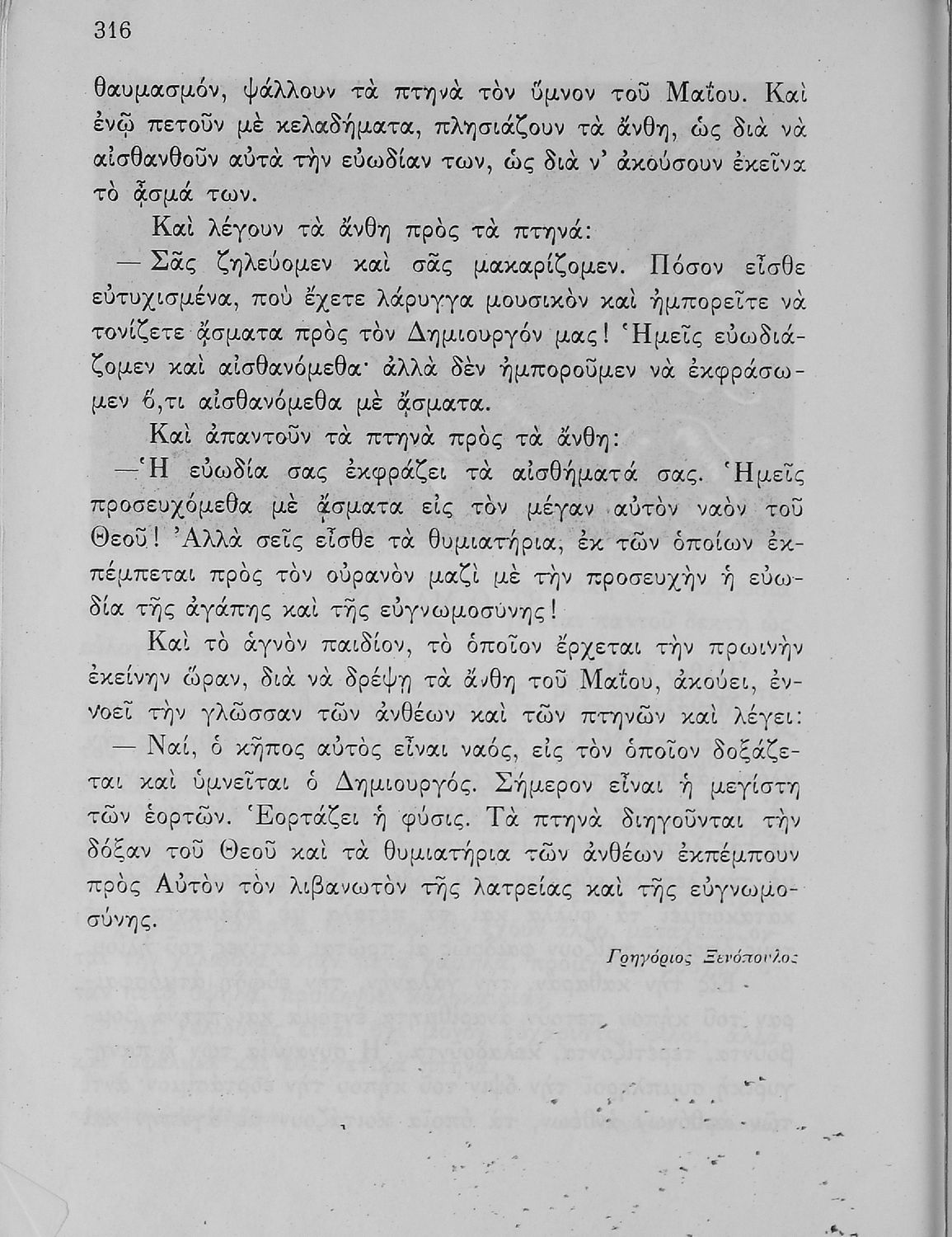 Αναγνωστικό Ε΄ Δημοτικού που περιέχει κείμενα εμπνευσμένα από την εθνική, κοινωνική και οικογενειακή ζωή και την ελληνική φύση, μυθολογία και ιστορία.