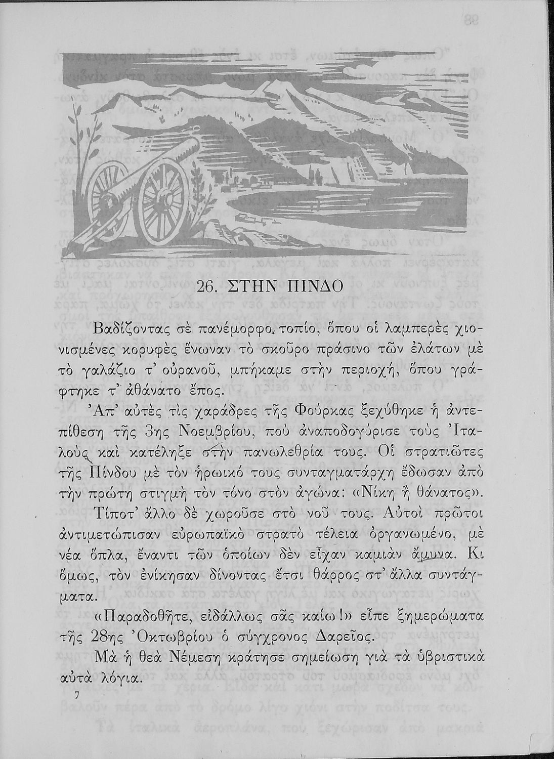 Αναγνωστικό Ε΄ Δημοτικού που περιέχει κείμενα εμπνευσμένα από την εθνική, κοινωνική και οικογενειακή ζωή και την ελληνική φύση, μυθολογία και ιστορία. Φέρει το σύμβολο της δικτατορίας.