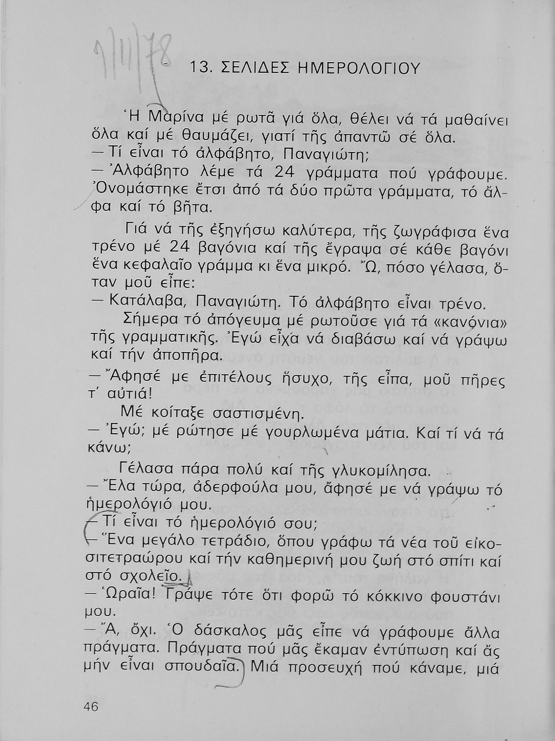 Αναγνωστικό για τους μαθητές της Γ΄ και Δ΄ Δημοτικού που περιλαμβάνει με πεζά και ποιήματα της νέας ελληνικής λογοτεχνίας εμπνευσμένα από την καθημερινότητα των παιδιών και των οικογενειών τους, την ελληνική ...