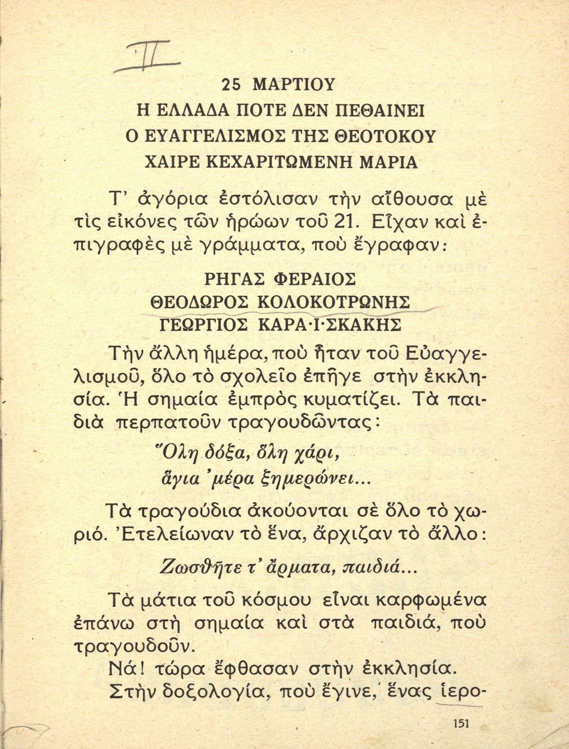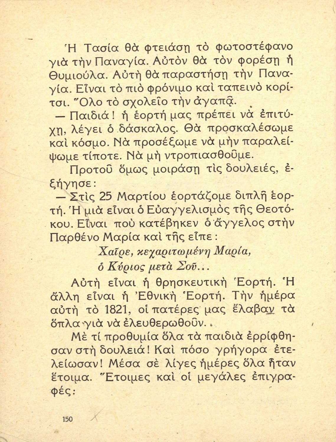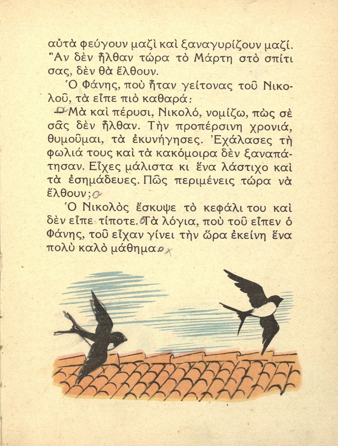 Αναγνωστικό Β' Δημοτικού που είναι χωρισμένο σύμφωνα με τις εποχές του χρόνου και περιλαμβάνει κείμενα ηθοποιητικού περιεχομένου εμπνευσμένα από τη θρησκευτική, εθνική, κοινωνική και οικογενειακή ζωή. Φέρει το