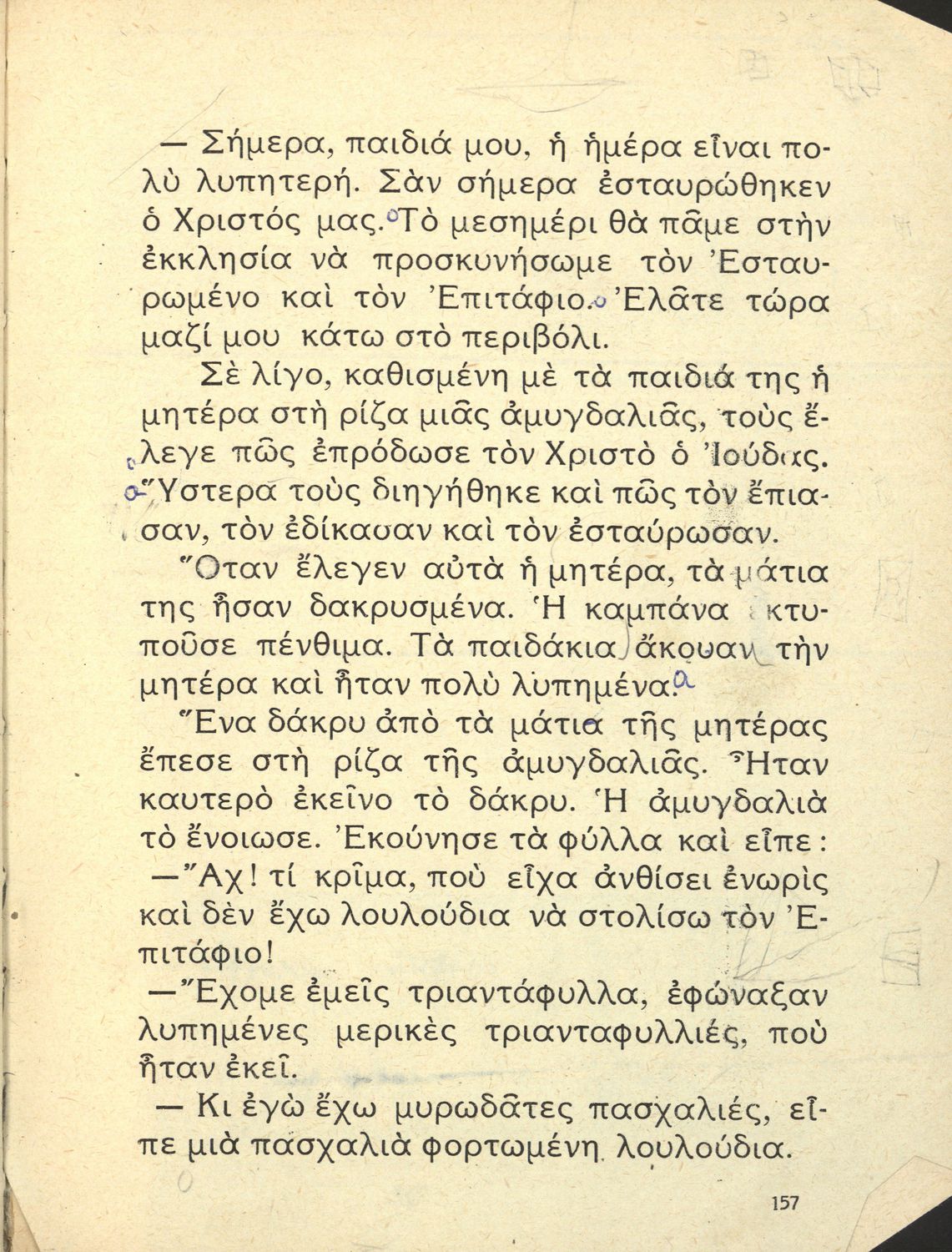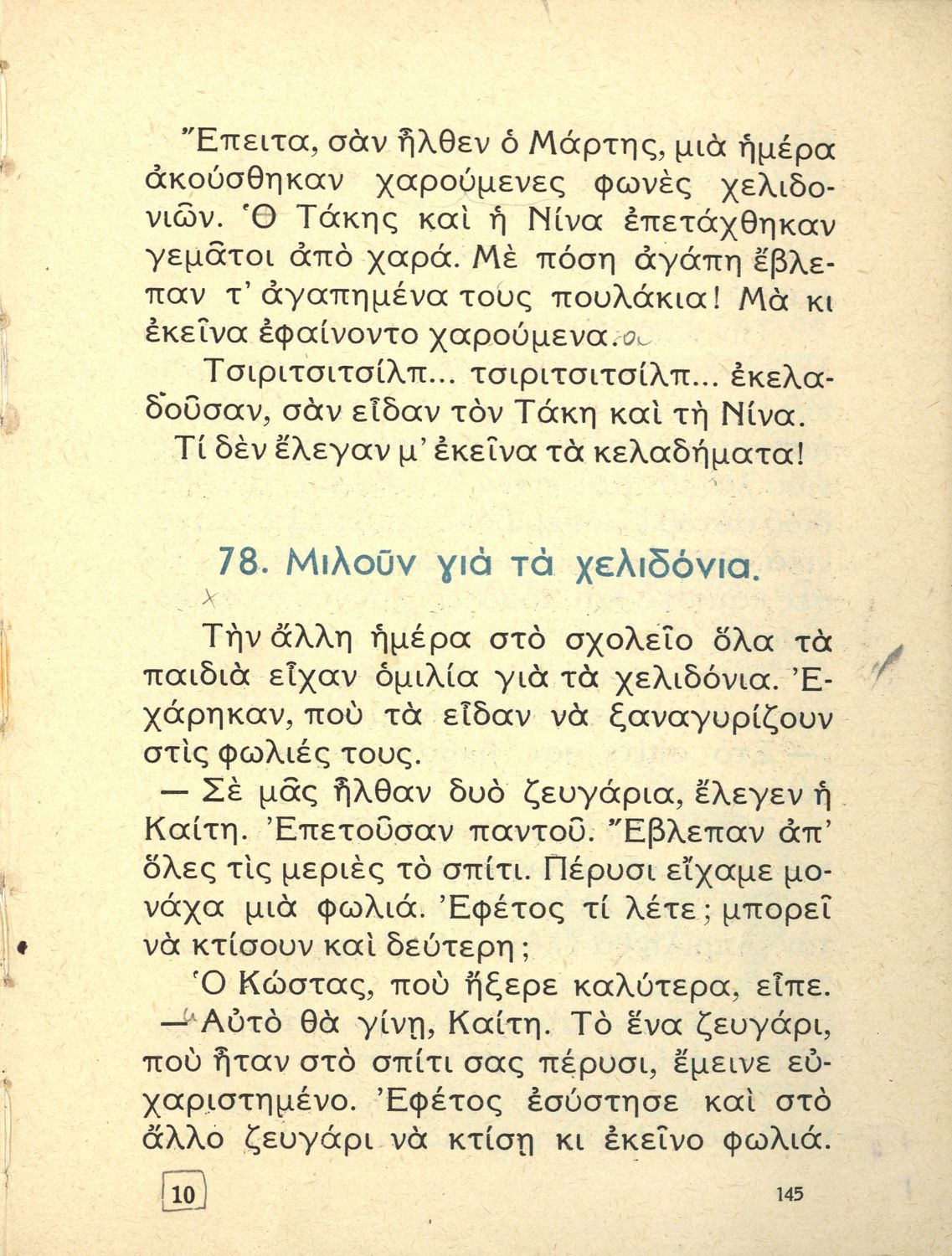Αναγνωστικό Β' Δημοτικού που είναι χωρισμένο σύμφωνα με τις εποχές του χρόνου και περιλαμβάνει κείμενα ηθοποιητικού περιεχομένου εμπνευσμένα από τη θρησκευτική, εθνική, κοινωνική και οικογενειακή ζωή.