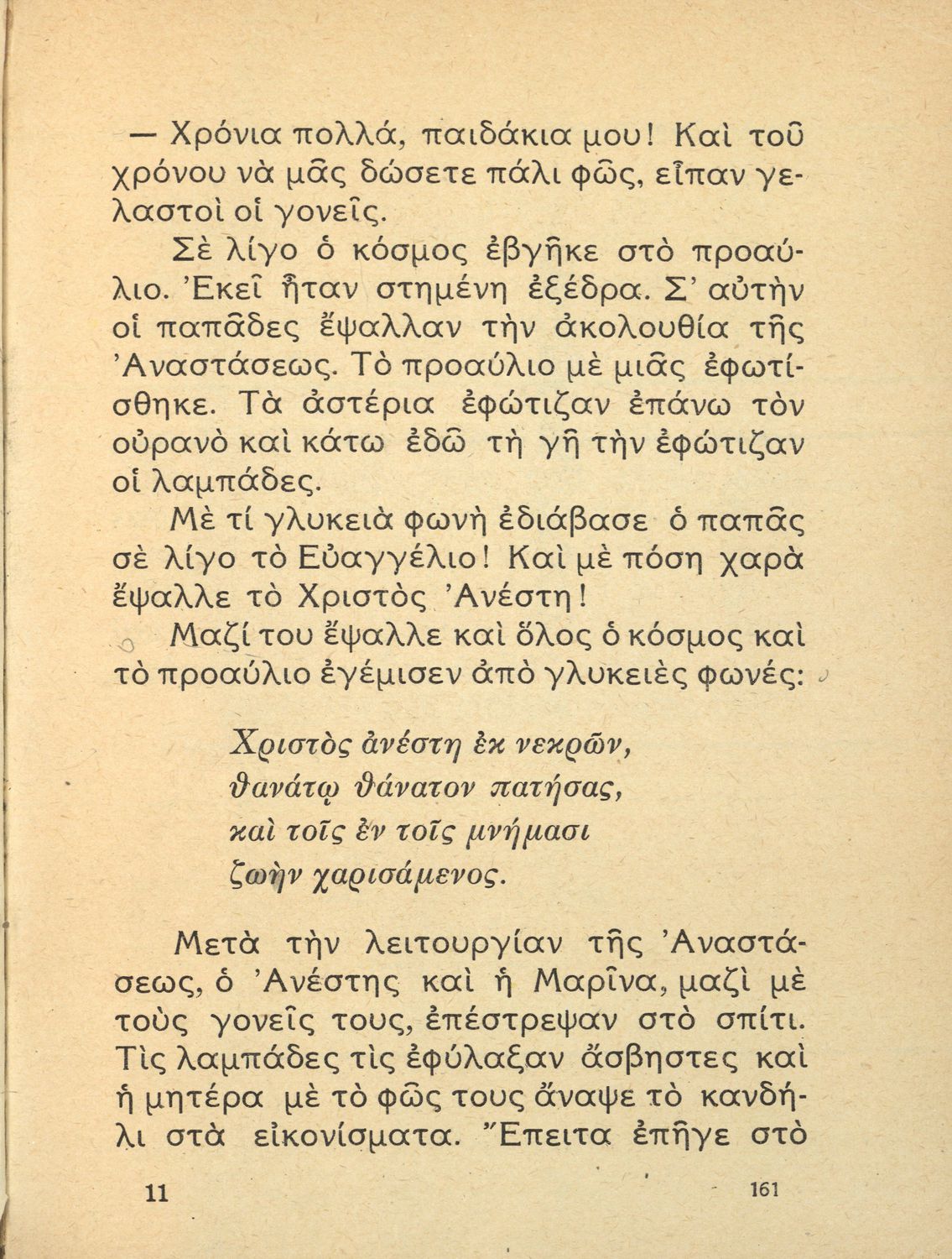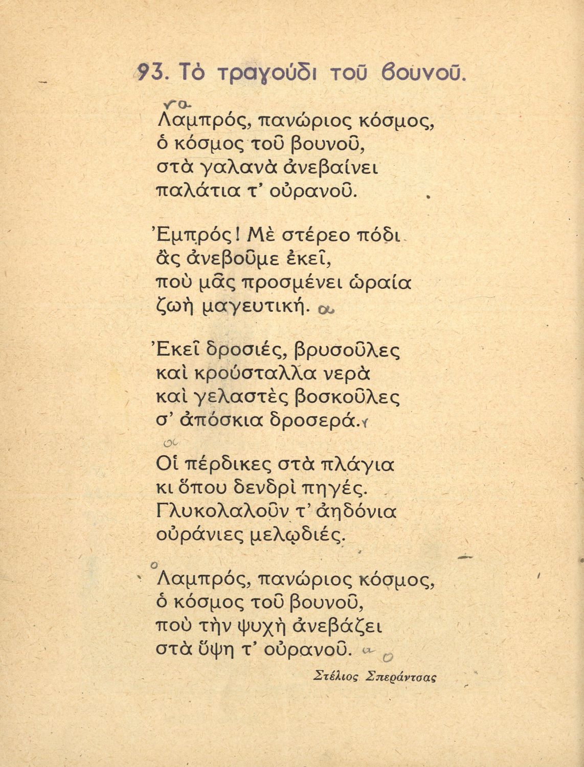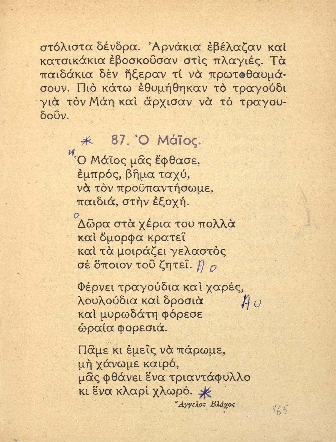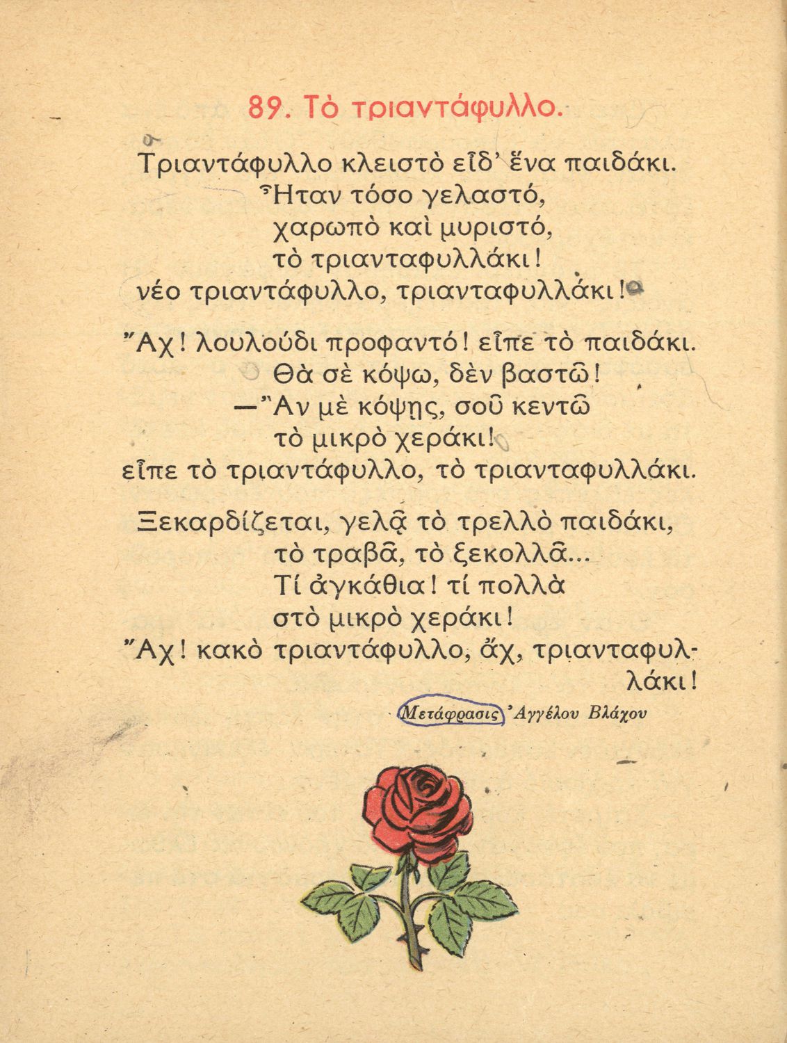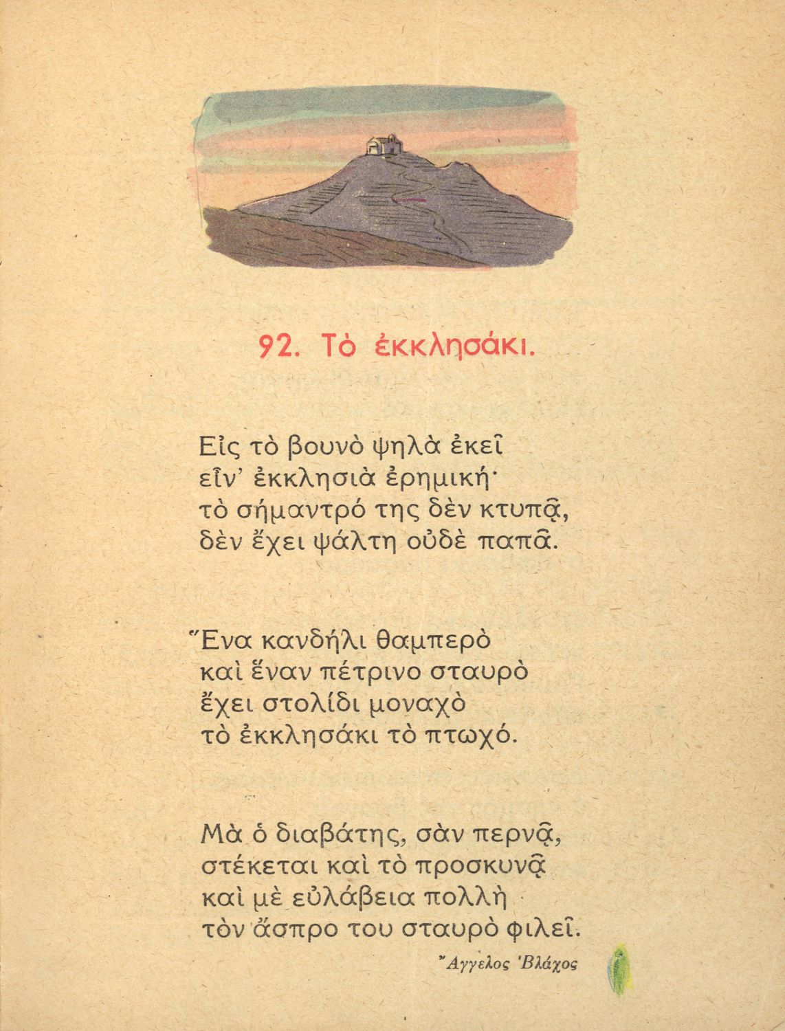 Αναγνωστικό Β' Δημοτικού που είναι χωρισμένο σύμφωνα με τις εποχές του χρόνου και περιλαμβάνει κείμενα ηθοποιητικού περιεχομένου εμπνευσμένα από τη θρησκευτική, εθνική, κοινωνική και οικογενειακή ζωή. Φέρει το
