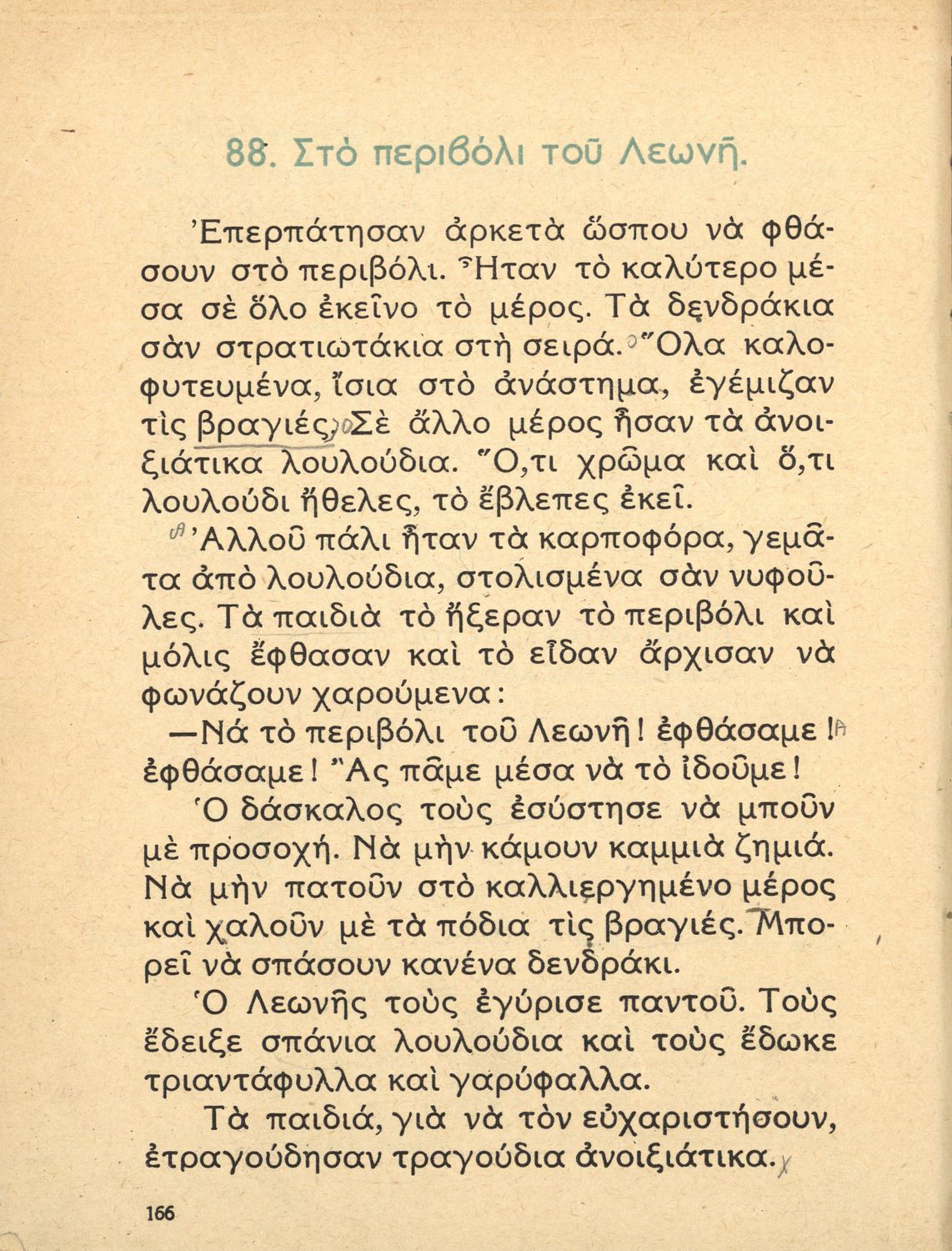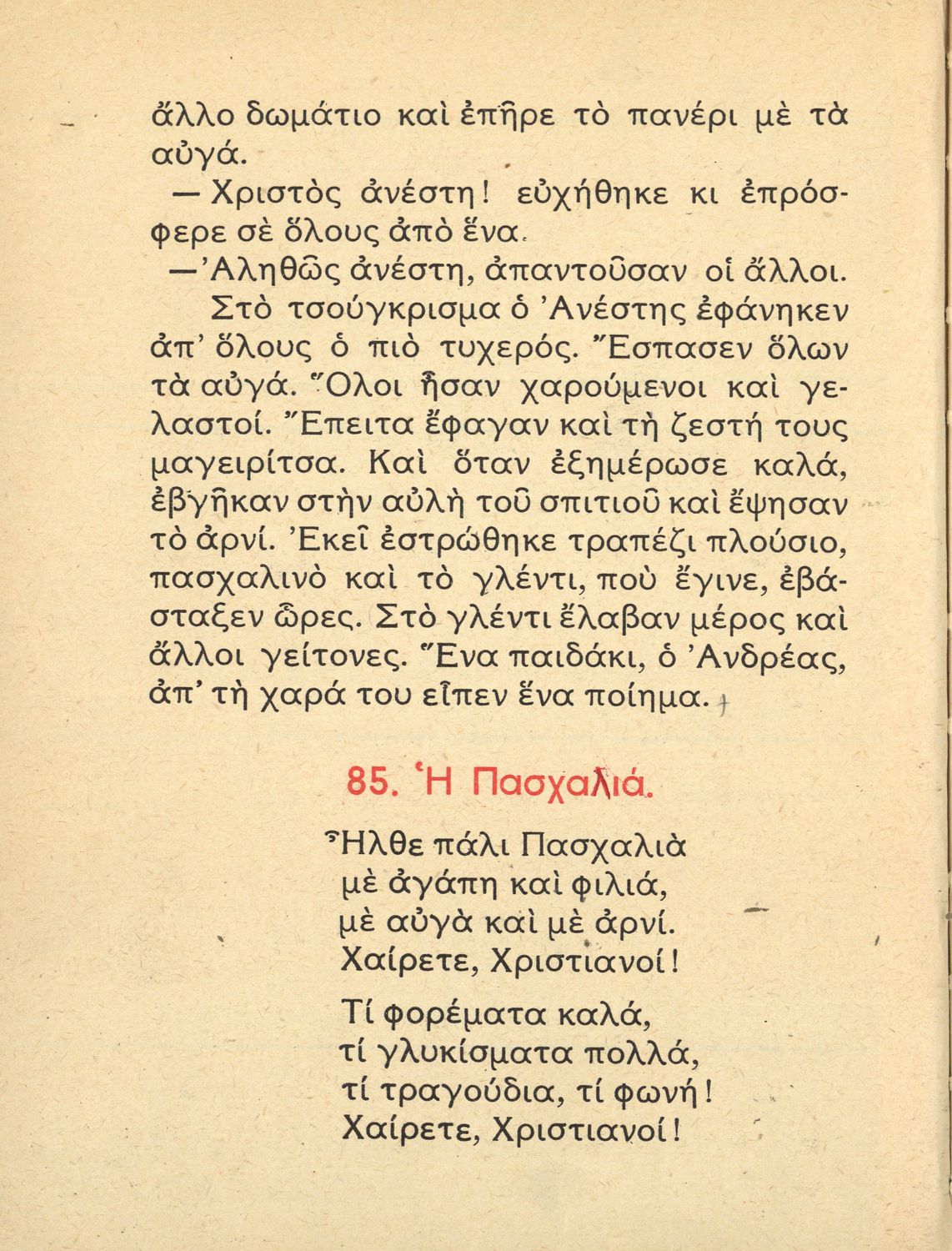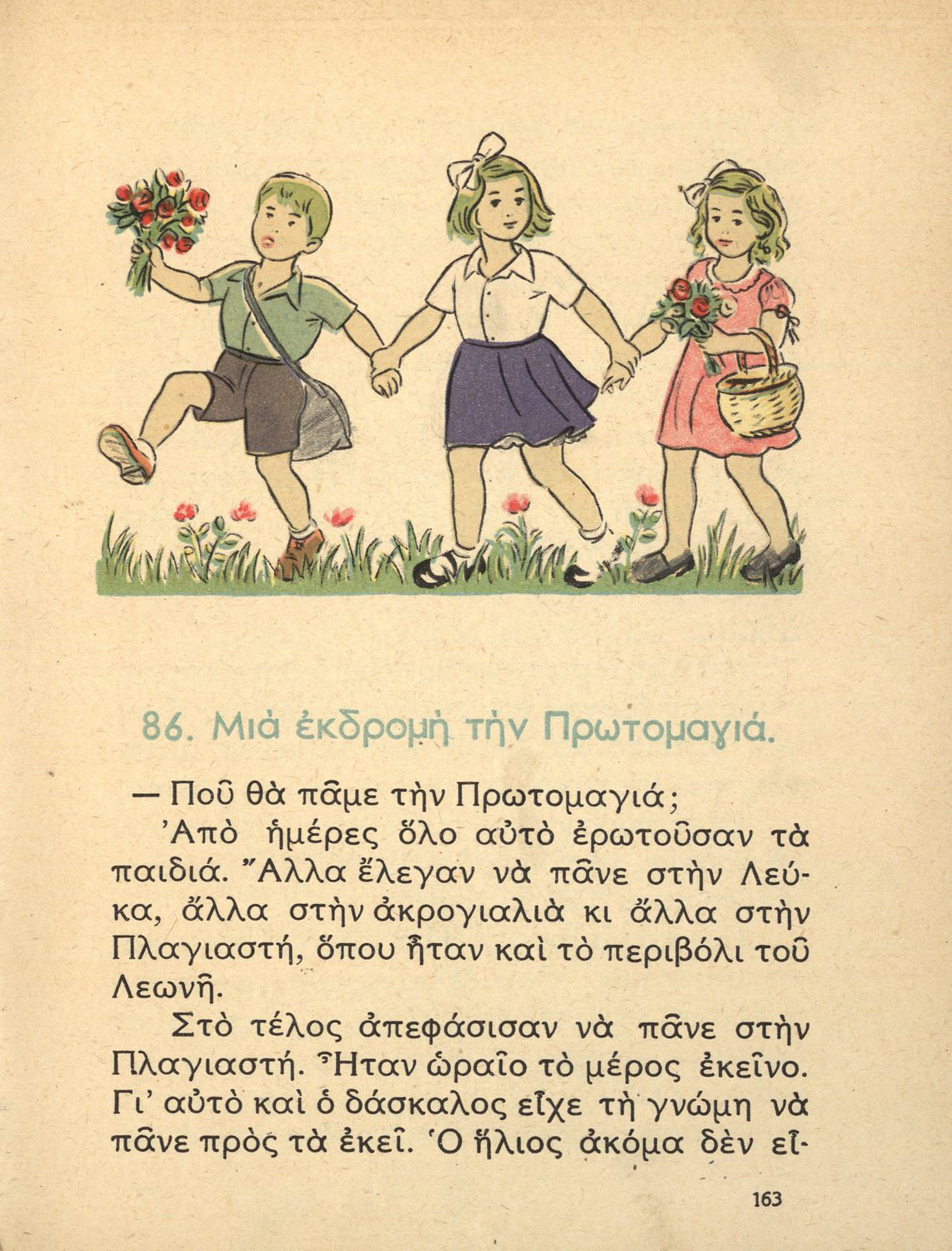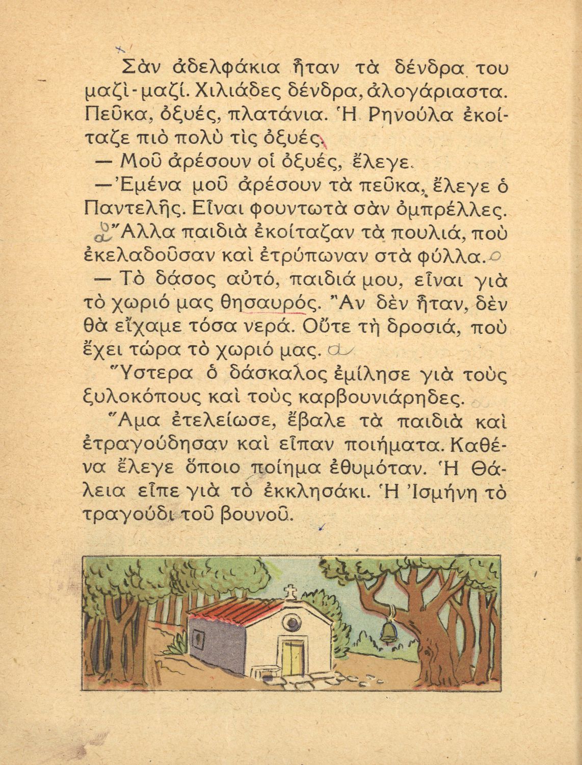 Αναγνωστικό Β' Δημοτικού που είναι χωρισμένο σύμφωνα με τις εποχές του χρόνου και περιλαμβάνει κείμενα ηθοποιητικού περιεχομένου εμπνευσμένα από τη θρησκευτική, εθνική, κοινωνική και οικογενειακή ζωή.