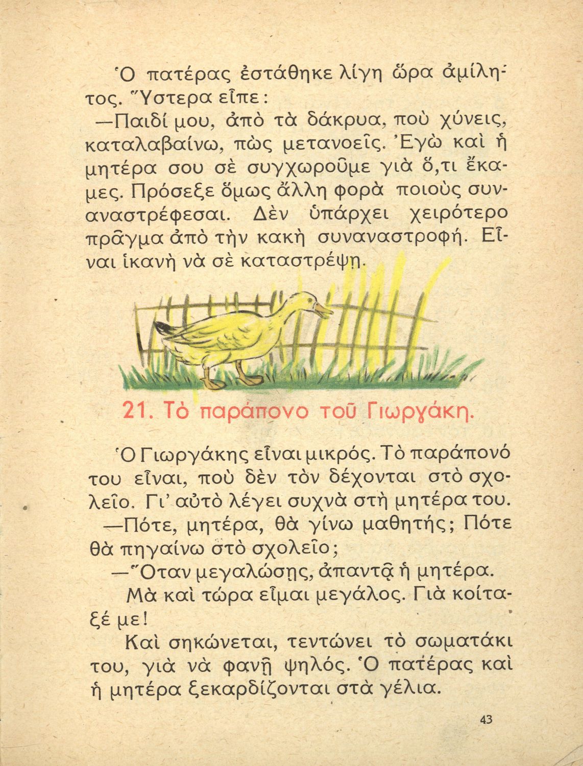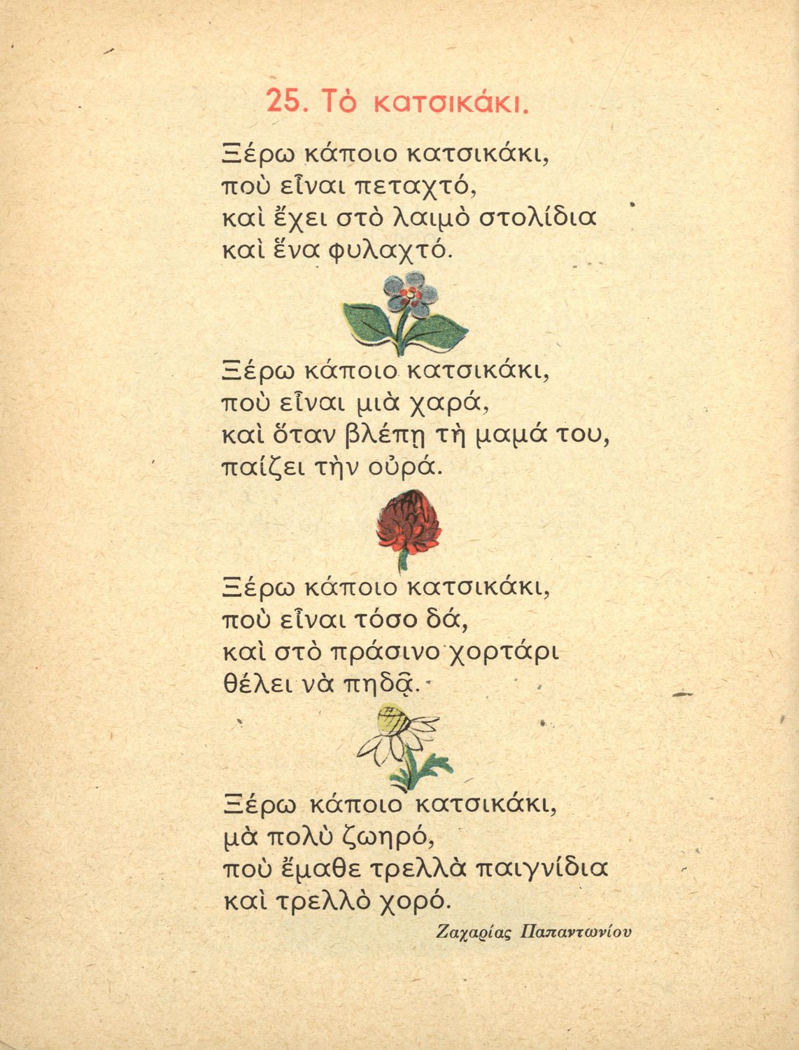 Αναγνωστικό Β' Δημοτικού που είναι χωρισμένο σύμφωνα με τις εποχές του χρόνου και περιλαμβάνει κείμενα ηθοποιητικού περιεχομένου εμπνευσμένα από τη θρησκευτική, εθνική, κοινωνική και οικογενειακή ζωή.