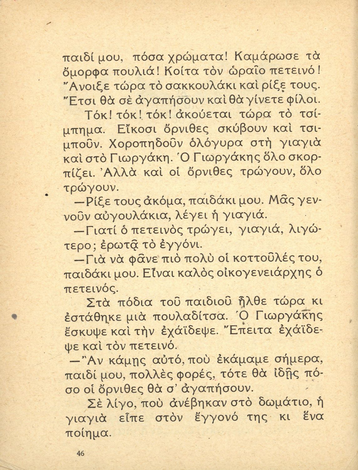 Αναγνωστικό Β' Δημοτικού που είναι χωρισμένο σύμφωνα με τις εποχές του χρόνου και περιλαμβάνει κείμενα ηθοποιητικού περιεχομένου εμπνευσμένα από τη θρησκευτική, εθνική, κοινωνική και οικογενειακή ζωή. Φέρει το