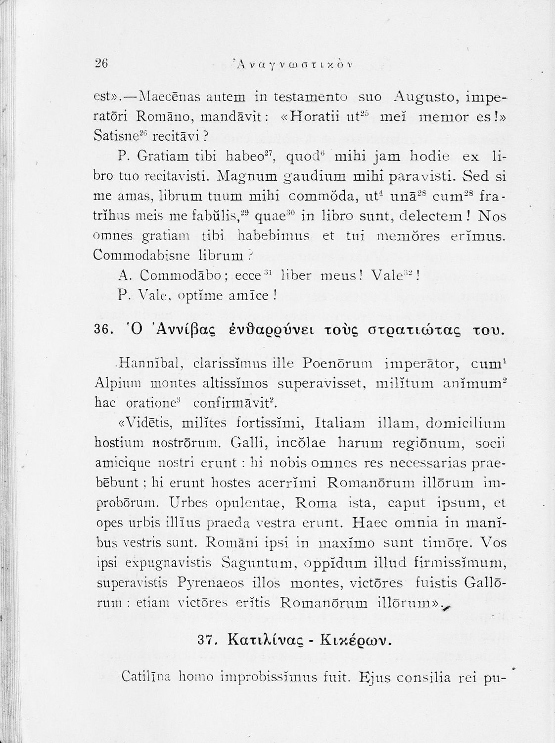 LDR 01263 2200193 4500 035 ## _a01-17005 040 ## _aΙνστιτούτο Εκπαιδευτικής Πολιτικής 041 ## _ael 100 ## _aΚυριάκος Κοσμάς 110 ## _a17005 245 0# _aΑναγνωστικόν της λατινικής γλώσσης δια την Δ΄ τάξιν των Γυμνασίων 260 ## _aΑθήνα _bΟργανισμός Εκδόσεως Σχολικών Βιβλίων _c1943 300 ## _a96 _c20 520 ## _aΣχολικό εγχειρίδιο Λατινικών για τη Δ΄ Γυμνασίου που περιέχει 54 κείμενα/περικοπές στα λατινικά, ερμηνευτικά υπομνήματα, λεξιλόγιο και κατάλογο με τα συντακτικά φαινόμενα (αφαιρετική, προθέσεις, σύνδεσμοι) που διδάσκονται με βάση τις περικοπές. 521 ## _aΔ' Γυμνασίου 522 ## _aΕλλάδα 546 ## _aΚαθαρεύουσα 563 ## _aΜαλακό Εξώφυλλο 650 #4 _aΑινείας _aΑννίβας _aΑσκληπιός _aΚαίσαρας _aΚαρχηδόνα _aΠάτροκλος _aΡωμύλος _aΤυρταίος