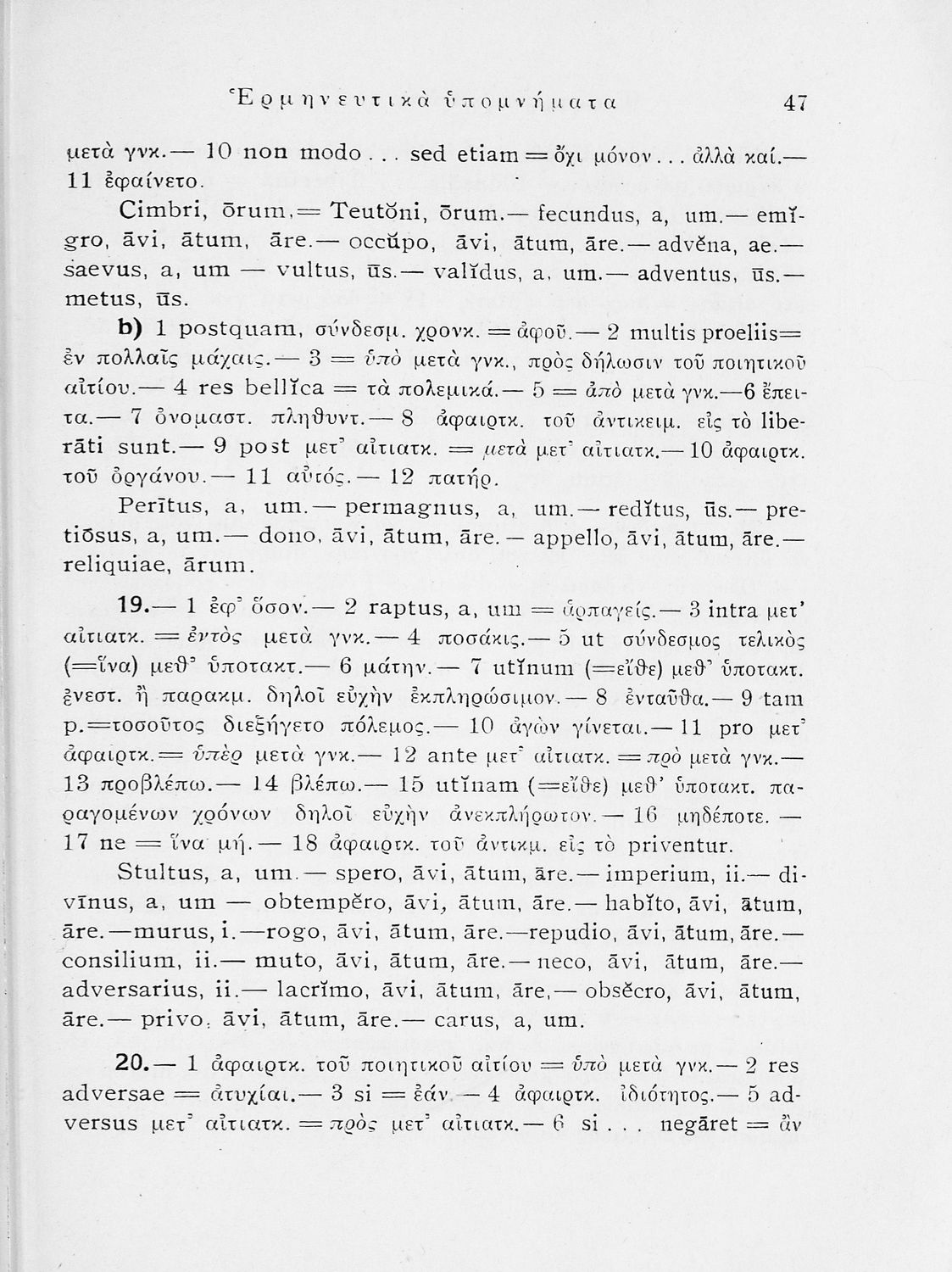 LDR 01263 2200193 4500 035 ## _a01-17005 040 ## _aΙνστιτούτο Εκπαιδευτικής Πολιτικής 041 ## _ael 100 ## _aΚυριάκος Κοσμάς 110 ## _a17005 245 0# _aΑναγνωστικόν της λατινικής γλώσσης δια την Δ΄ τάξιν των Γυμνασίων 260 ## _aΑθήνα _bΟργανισμός Εκδόσεως Σχολικών Βιβλίων _c1943 300 ## _a96 _c20 520 ## _aΣχολικό εγχειρίδιο Λατινικών για τη Δ΄ Γυμνασίου που περιέχει 54 κείμενα/περικοπές στα λατινικά, ερμηνευτικά υπομνήματα, λεξιλόγιο και κατάλογο με τα συντακτικά φαινόμενα (αφαιρετική, προθέσεις, σύνδεσμοι) που διδάσκονται με βάση τις περικοπές. 521 ## _aΔ' Γυμνασίου 522 ## _aΕλλάδα 546 ## _aΚαθαρεύουσα 563 ## _aΜαλακό Εξώφυλλο 650 #4 _aΑινείας _aΑννίβας _aΑσκληπιός _aΚαίσαρας _aΚαρχηδόνα _aΠάτροκλος _aΡωμύλος _aΤυρταίος