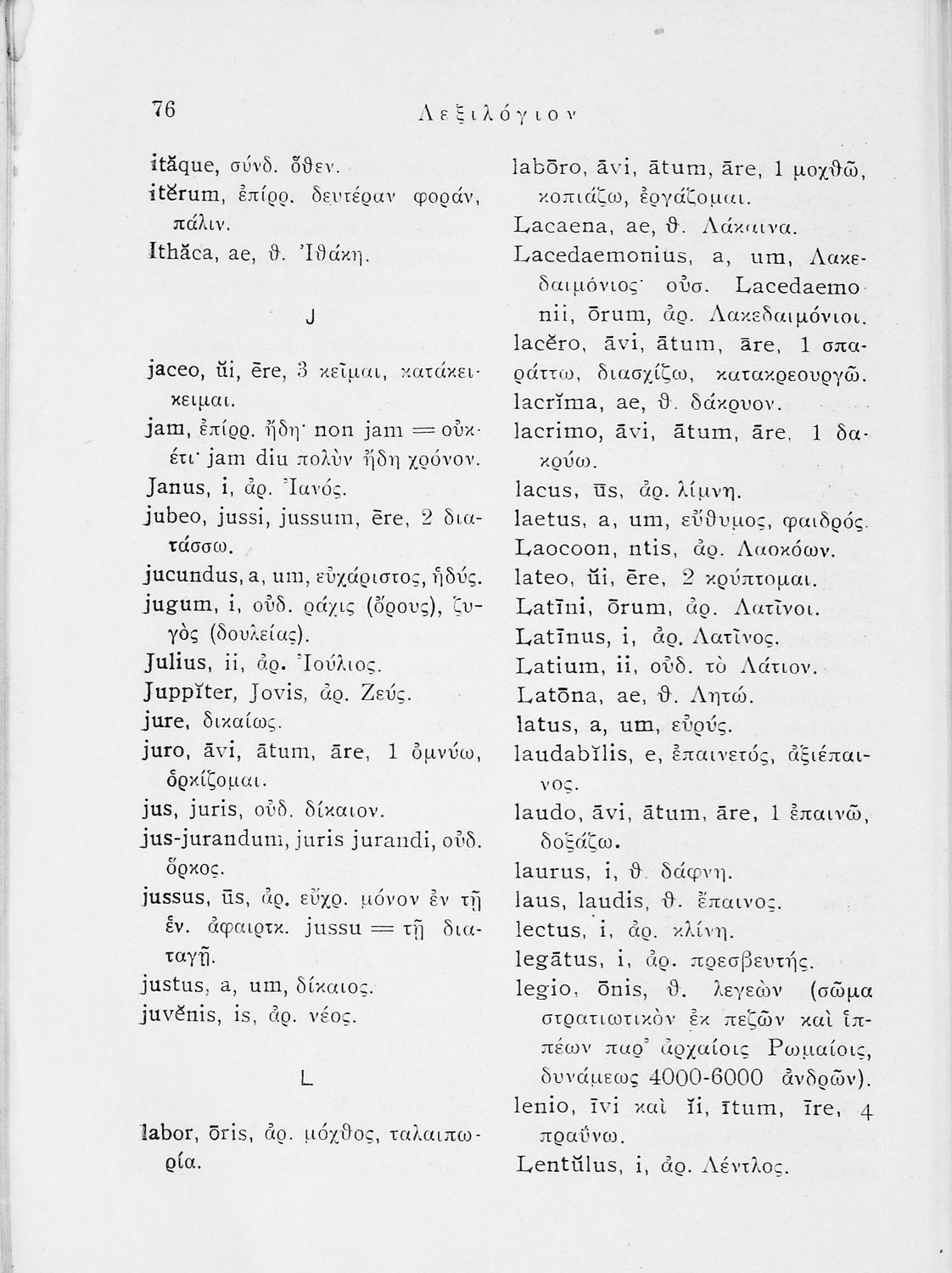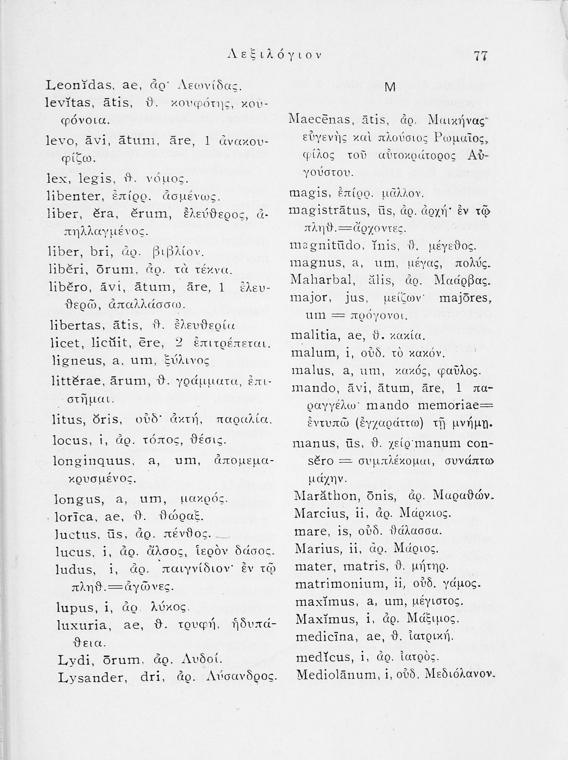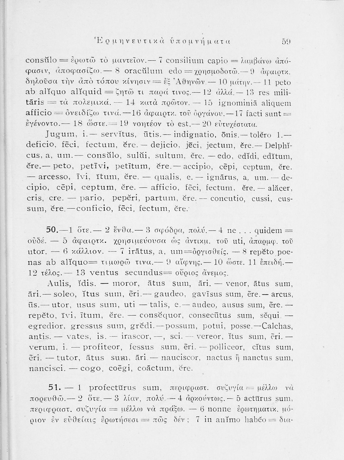 Σχολικό εγχειρίδιο Λατινικών για τη Γ΄ Γυμνασίου που περιέχει 54 κείμενα/περικοπές στα λατινικά, ερμηνευτικά υπομνήματα, λεξιλόγιο και κατάλογο με τα συντακτικά φαινόμενα (αφαιρετική, προθέσεις, σύνδεσμοι) που