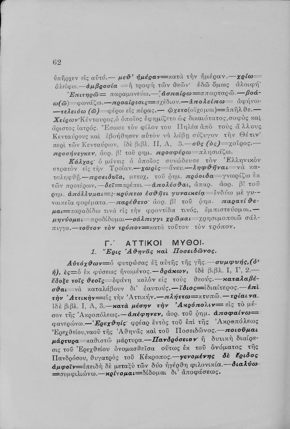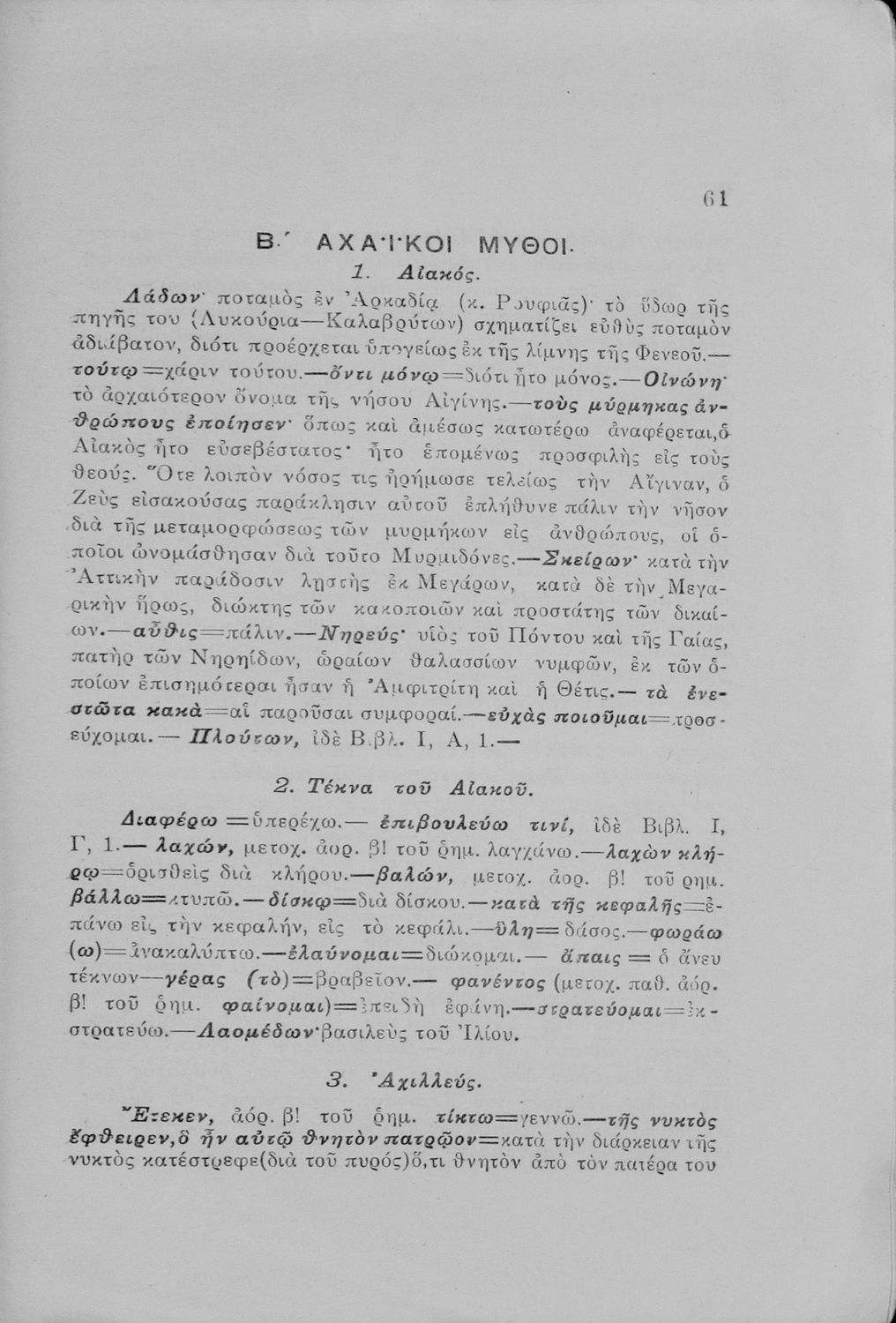 Βαθμίδα εκπαίδευσης: Δευτεροβάθμια Τάξη: Α' Γυμνασίου Μάθημα: Αρχαία Ελληνικά Γλώσσα: Καθαρεύουσα Παρουσίαση περιεχομένου: Σχολικό εγχειρίδιο Αρχαίων ελληνικών Α΄ Γυμνασίου που περιλαμβάνει εισαγωγή στη ζωή και το έργο των Απολλόδωρου και Αιλιανού, αποσπάσματα από τη Βιβλιοθήκη του Απολλόδωρου και την Ποικίλη Ιστορία του Αιλιανού και ερμηνευτικές παρατηρήσεις και σχόλια. |