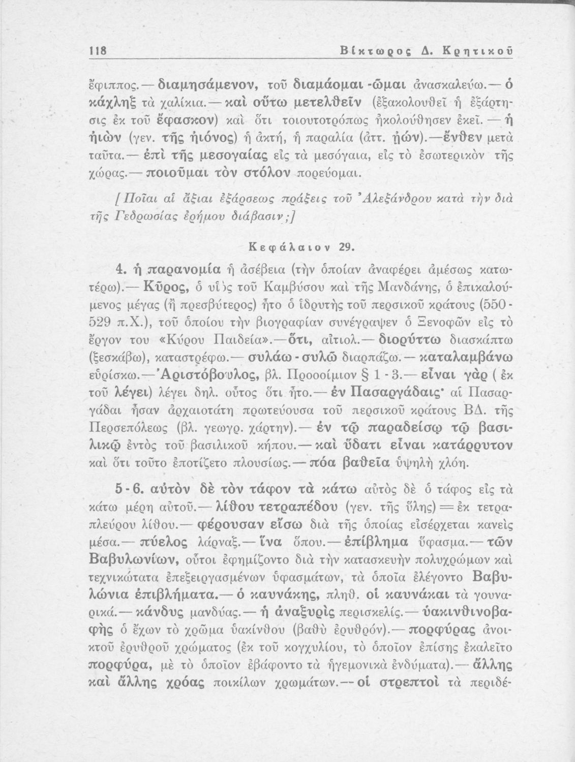 Αρριανός (Lucius Flavius Arrianus), Ηρόδοτος, Βίκτωρος Δ. Κρητικός, Κυριάκος Κοσμάς (σχόλια)