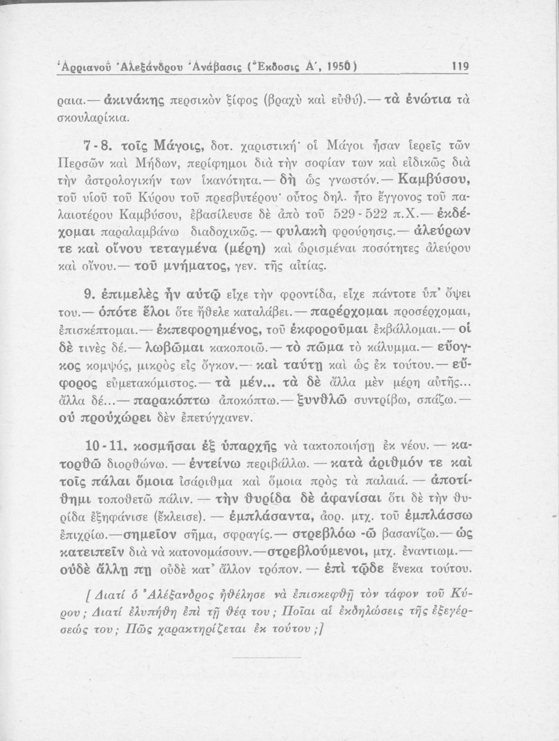 Σχολικό εγχειρίδιο Αρχαίων Ελληνικών που περιλαμβάνει αποσπάσματα από το έργο του Αρριανού Αλέξανδρου Ανάβασις και του Ηρόδοτου Ιστορίαι, ερμηνευτικές και λεξιλογικές παρατηρήσεις καθώς και τοπογραφικούς ...