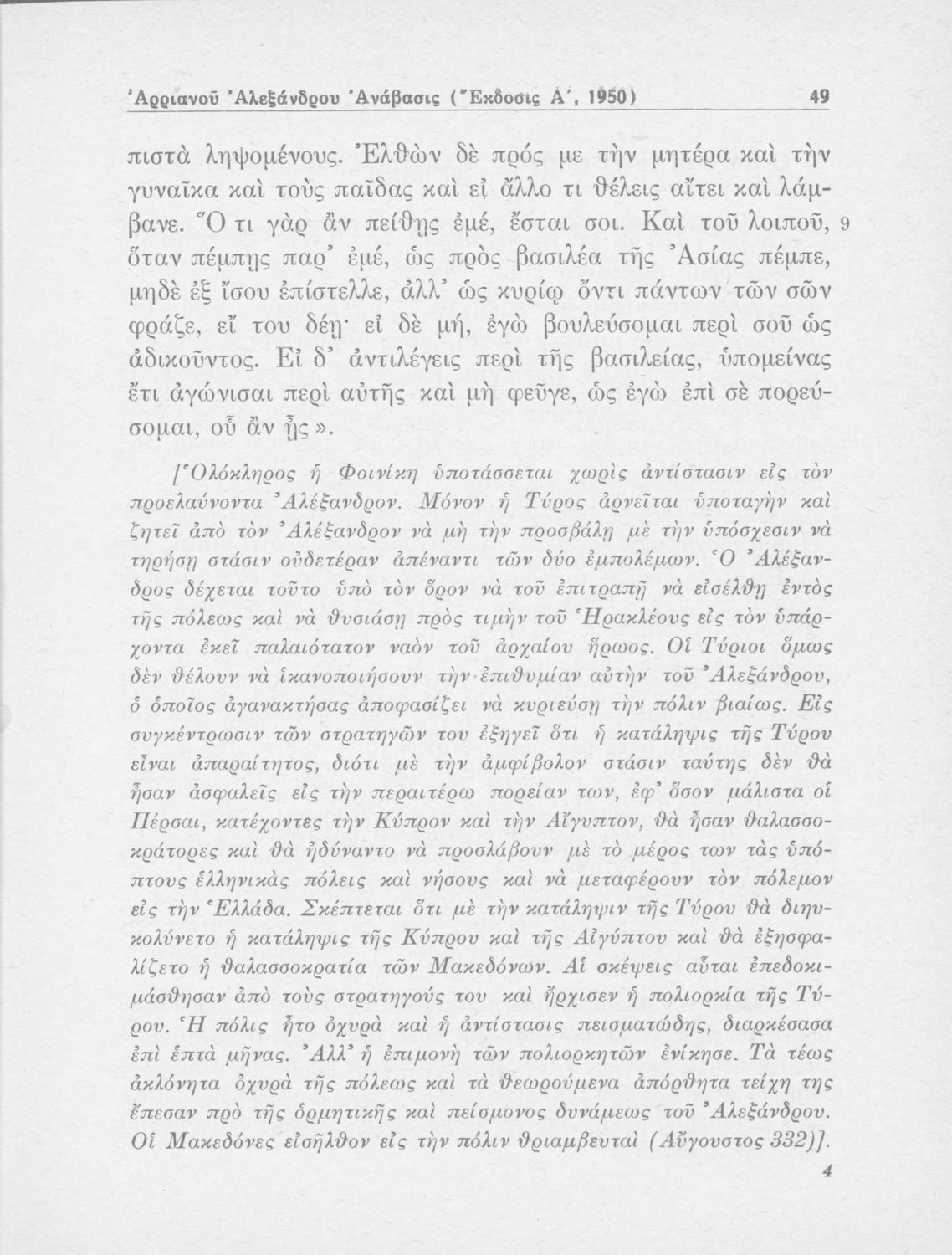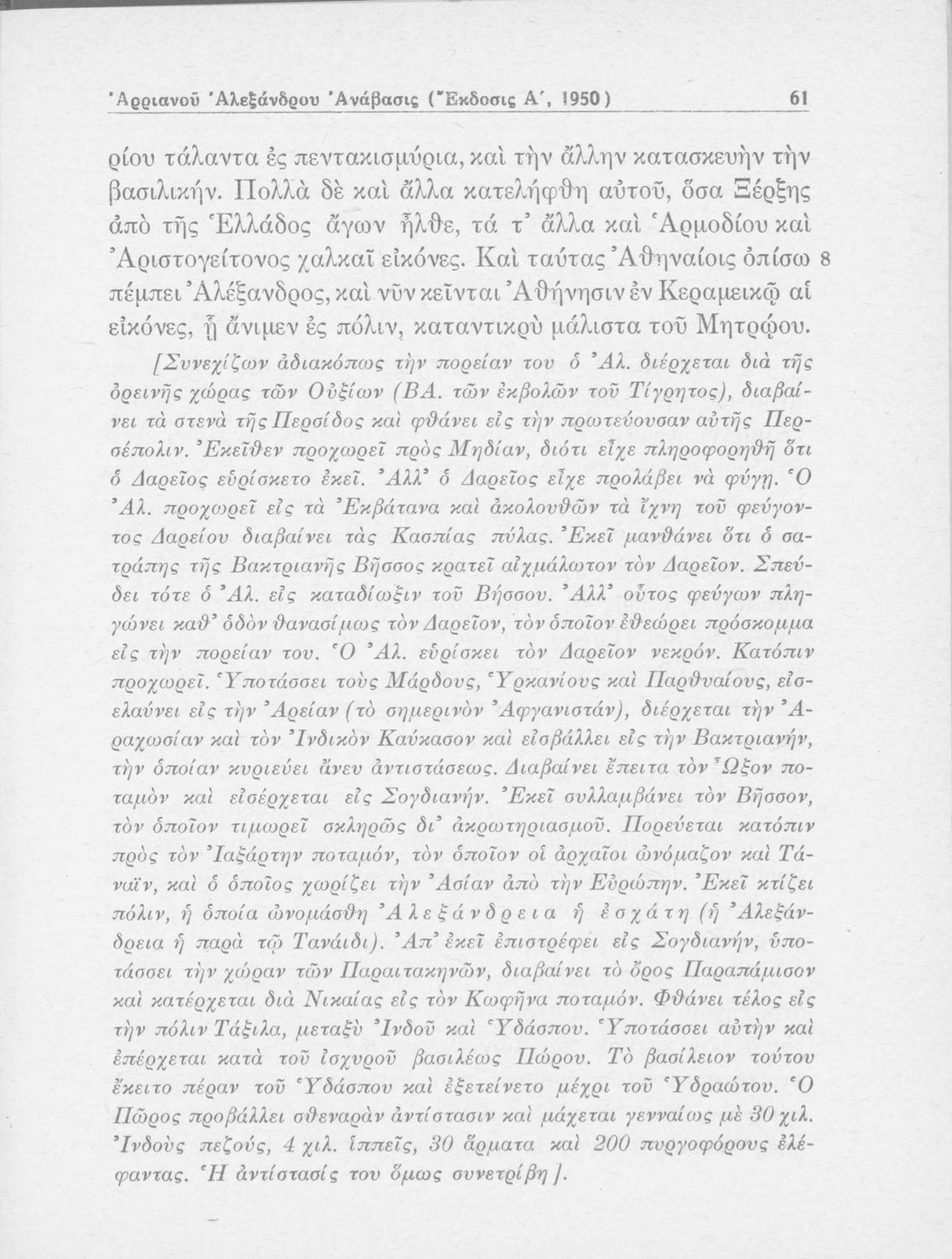 Σχολικό εγχειρίδιο Αρχαίων Ελληνικών που περιλαμβάνει αποσπάσματα από το έργο του Αρριανού Αλέξανδρου Ανάβασις και του Ηρόδοτου Ιστορίαι, ερμηνευτικές και λεξιλογικές παρατηρήσεις καθώς και τοπογραφικούς ...