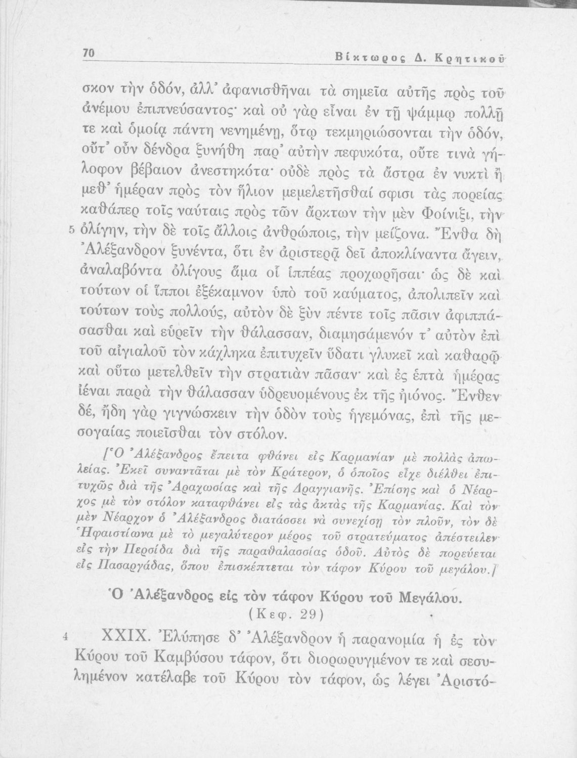 Αρριανός (Lucius Flavius Arrianus), Βίκτωρ Δ. Κρητικός (εισαγωγή, ερμηνευτικές σημειώσεις)