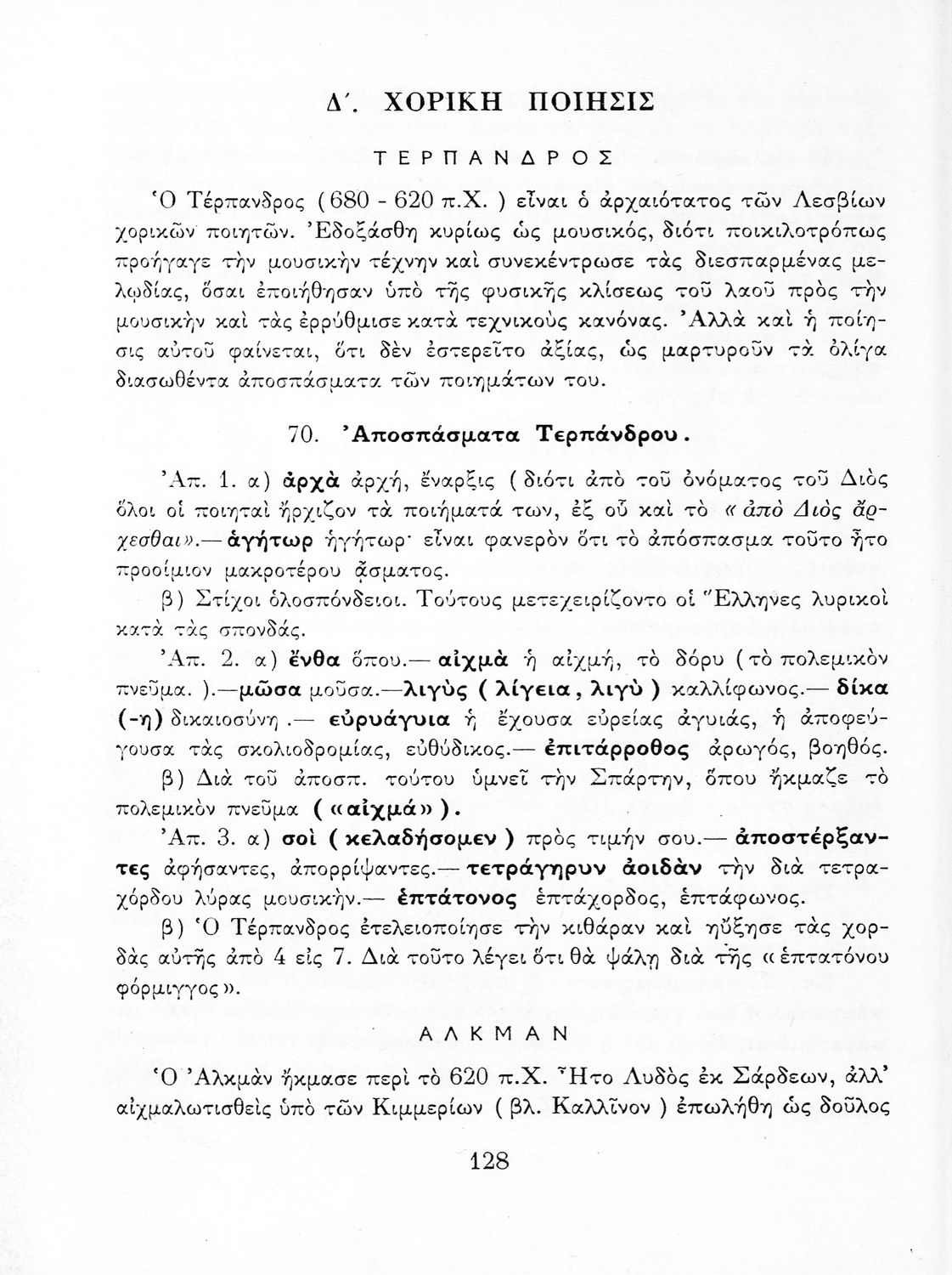 Αρχαίοι Έλληνες Λυρικοί - Εκλογαί ΣΤ΄ Γυμνασίου