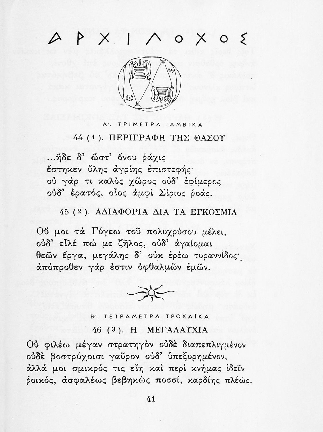 Σχολικό εγχειρίδιο Αρχαίων Ελληνικών για την ΣΤ΄ Γυμνασίου που περιέχει αποσπάσματα αρχαίων Ελλήνων λυρικών, εισαγωγή και ερμηνευτικά σχόλια. Κοσμείται από μικρά διακοσμητικά σχέδια.