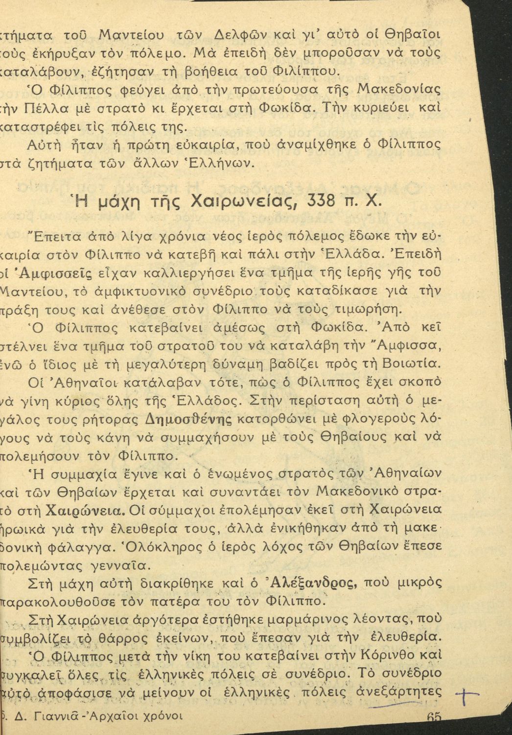 Μαθητικό βοήθημα Ιστορίας Δ' Δημοτικού που καλύπτει την περίοδο από τους προϊστορικούς χρόνους ως την κατάρρευση της Μακεδονικής Ηγεμονίας.
