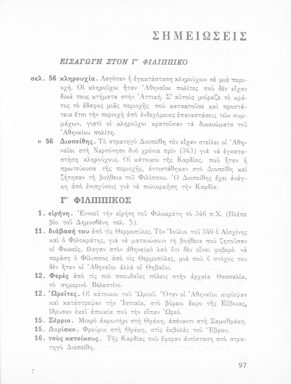 Δημοσθένης, Λυκούργος, Ισοκράτης, Κυριάκος Κοσμάς, Νικ. Φραγκίσκος, Μιχ. Περίδης, Γ. Παπαοικονόμου (σχόλια)