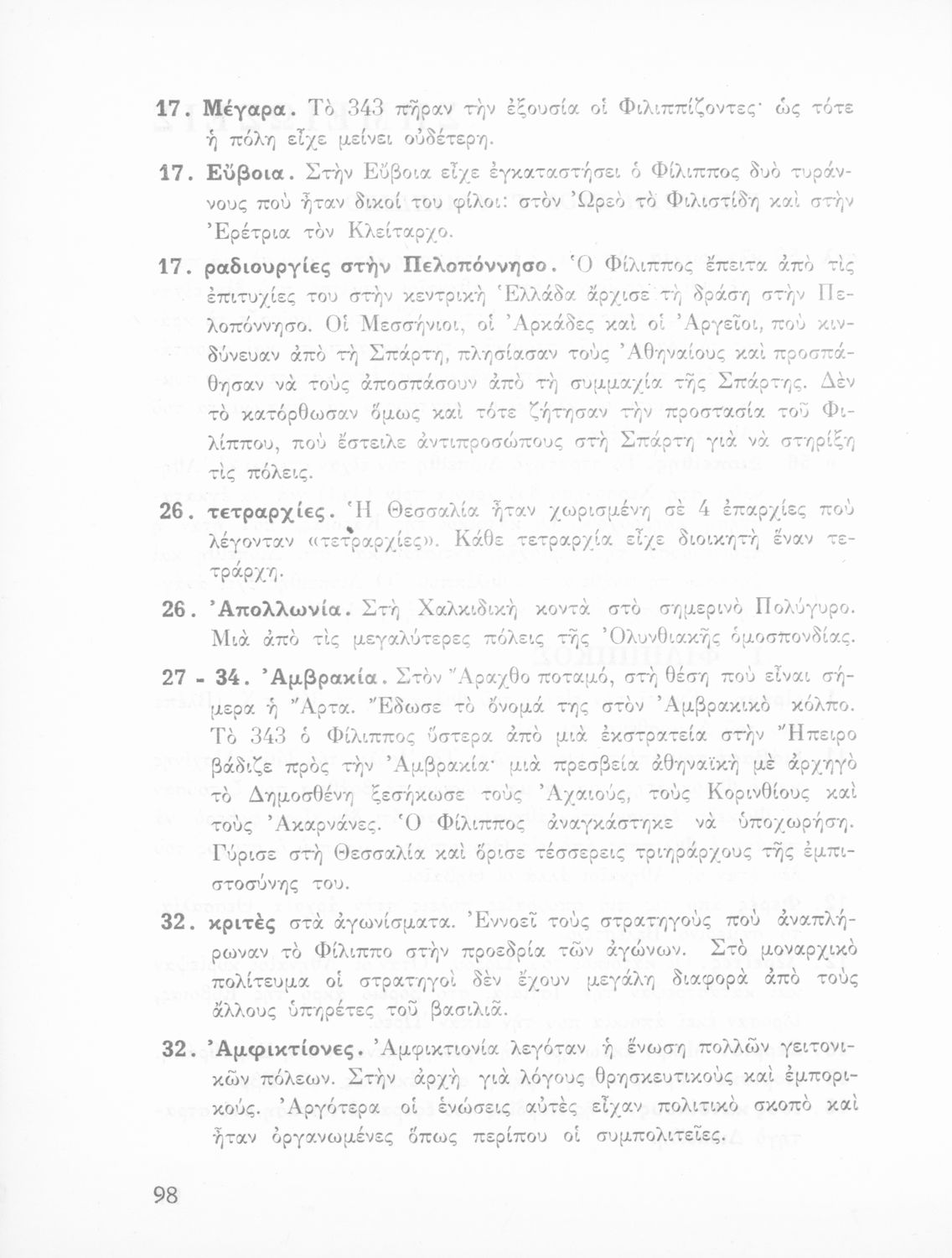Μαθητικό βοήθημα Αρχαίων Ελληνικών Ε΄ Γυμνασίου που περιέχει τους Λόγους του Δημοσθένη Α΄ και Β΄ Φιλιππικός, μετάφραση, και ερμηνευτικά, γραμματικά και πραγματολογικά σχόλια.