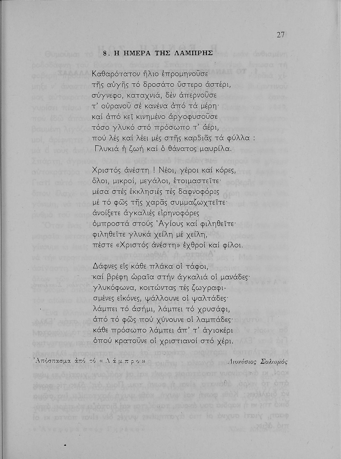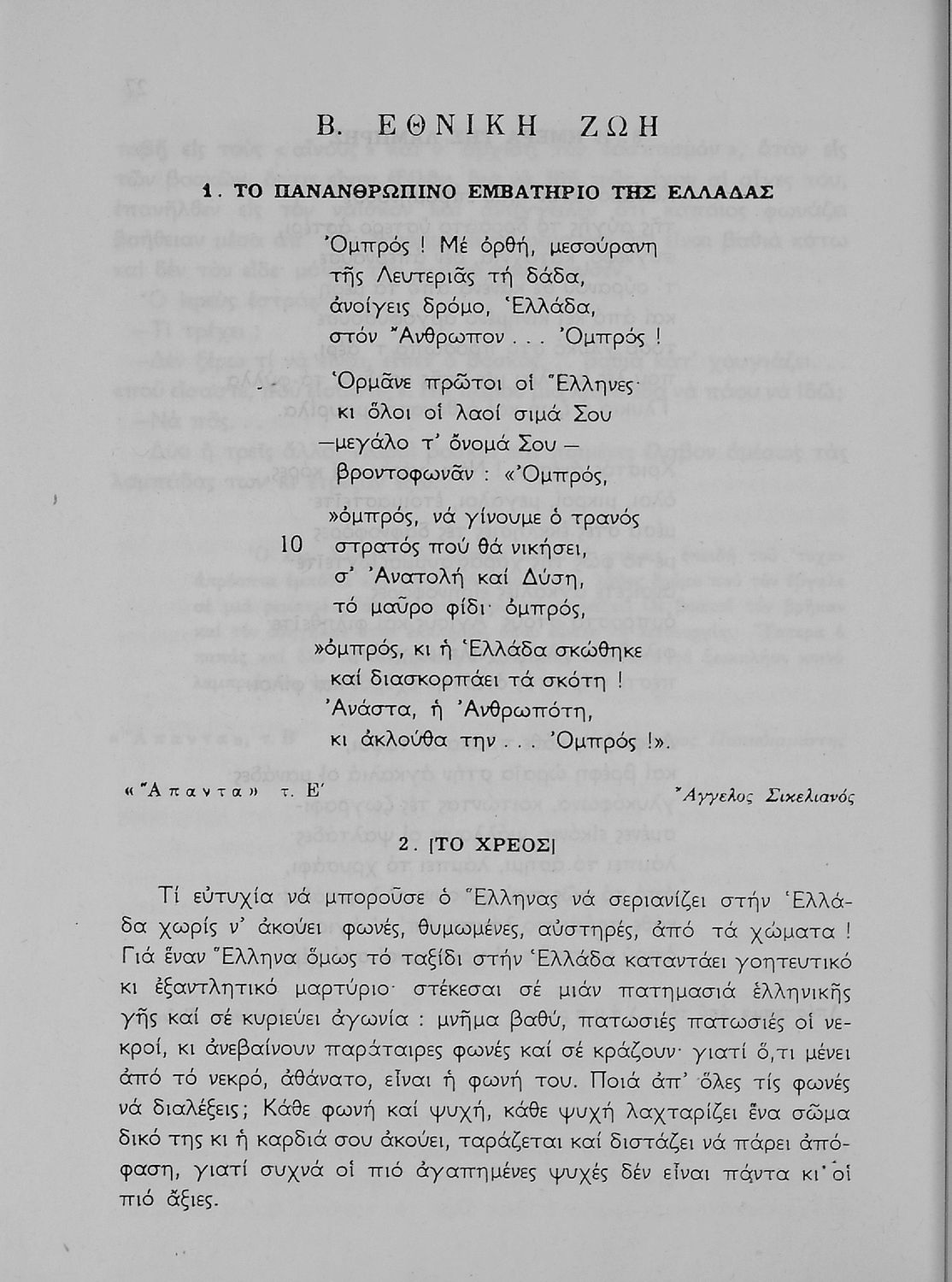 Σχολικό εγχειρίδιο Νέων Ελληνικών Γ΄ Γυμνασίου και Α' Αστικού Σχολείου που περιέχει πεζά και ποιήματα Ελλήνων συγγραφέων εμπνευσμένα από τη θρησκευτική και κοινωνική ζωή, την ελληνική μυθολογία, την αρχαία και