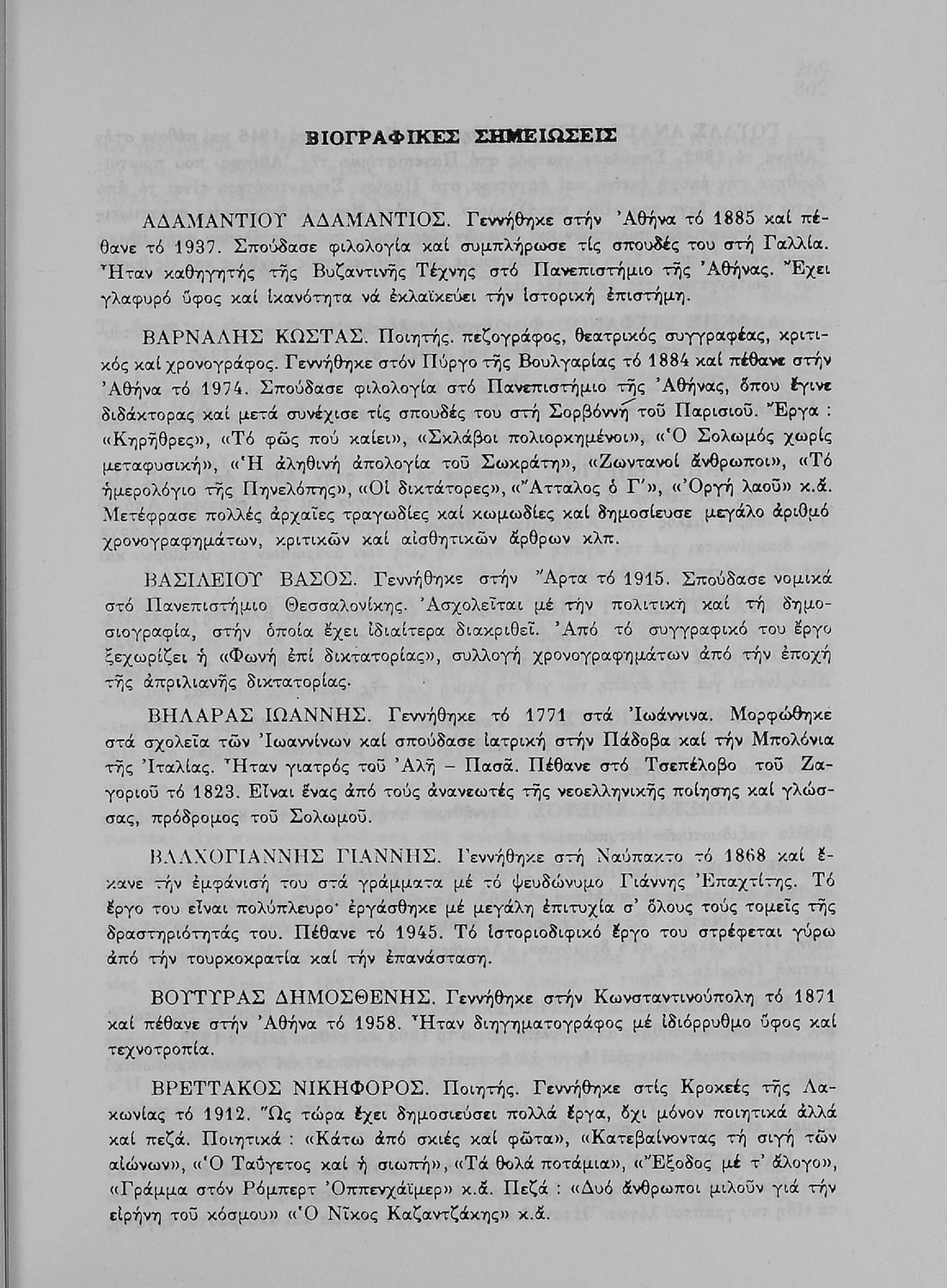 Σχετιζόμενοι όροι:  Παπαντωνίου, Πολέμης, Παλαμάς, Βηλαράς