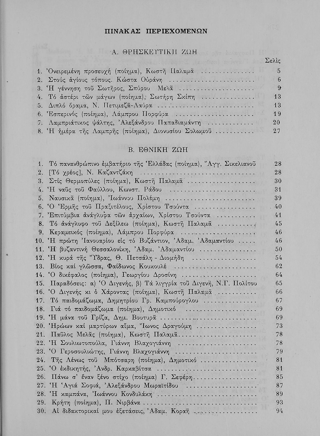 Σχολικό εγχειρίδιο Νέων Ελληνικών Γ΄ Γυμνασίου και Α' Αστικού Σχολείου που περιέχει πεζά και ποιήματα Ελλήνων συγγραφέων εμπνευσμένα από τη θρησκευτική και κοινωνική ζωή, την ελληνική μυθολογία, την αρχαία και