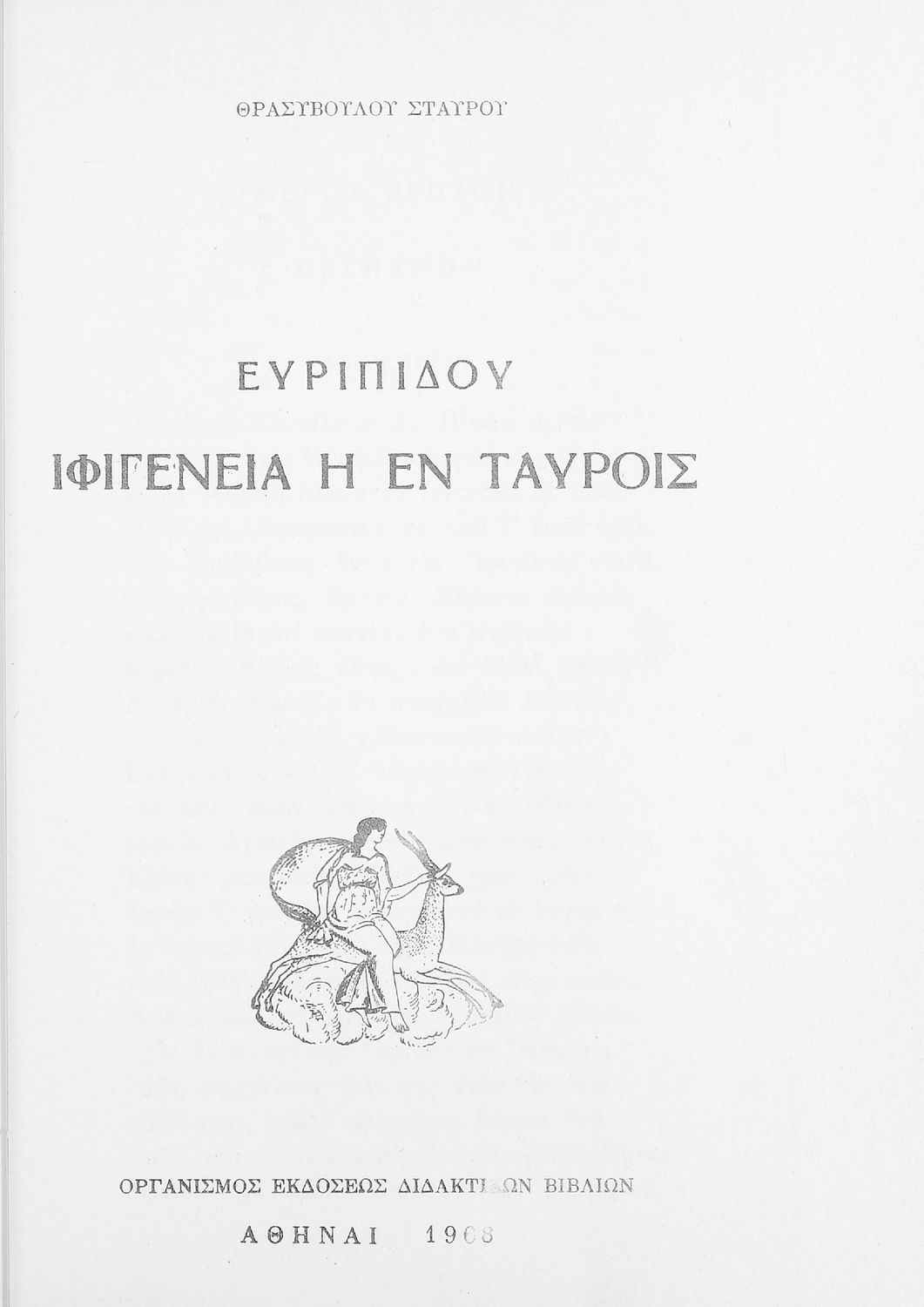 Ευριπίδου Τραγωδίαι Ιφιγένεια η εν Αυλίδι Ιφιγένεια η εν Ταύροις Ε΄ Γυμνασίου