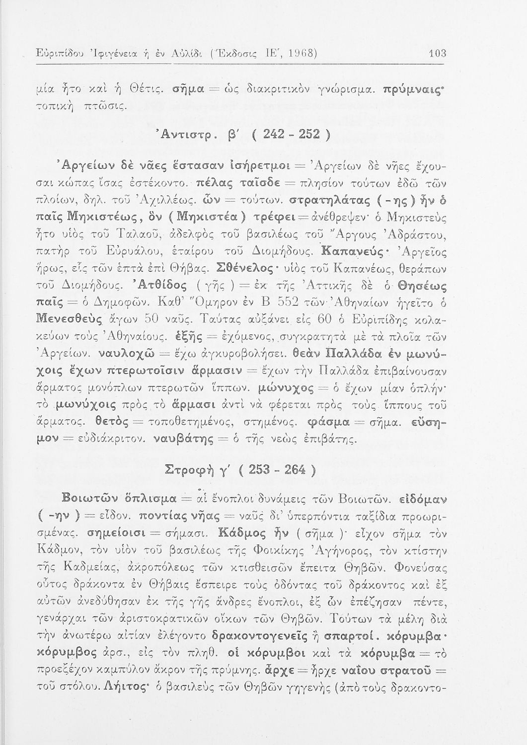 Σχολικό εγχειρίδιο Αρχαίων Ελληνικών Ε΄ Γυμνασίου που περιέχει τις τραγωδίες του Ευριπίδη Ιφιγένεια η εν Αυλίδι και Ιφιγένεια η εν Ταύροις, εισαγωγή στα έργα και ερμηνευτικά και ετυμολογικά σχόλια. Περιέχει και παράρτημα με εικόνες. Φέρει το σύμβολο της δικτατορίας.