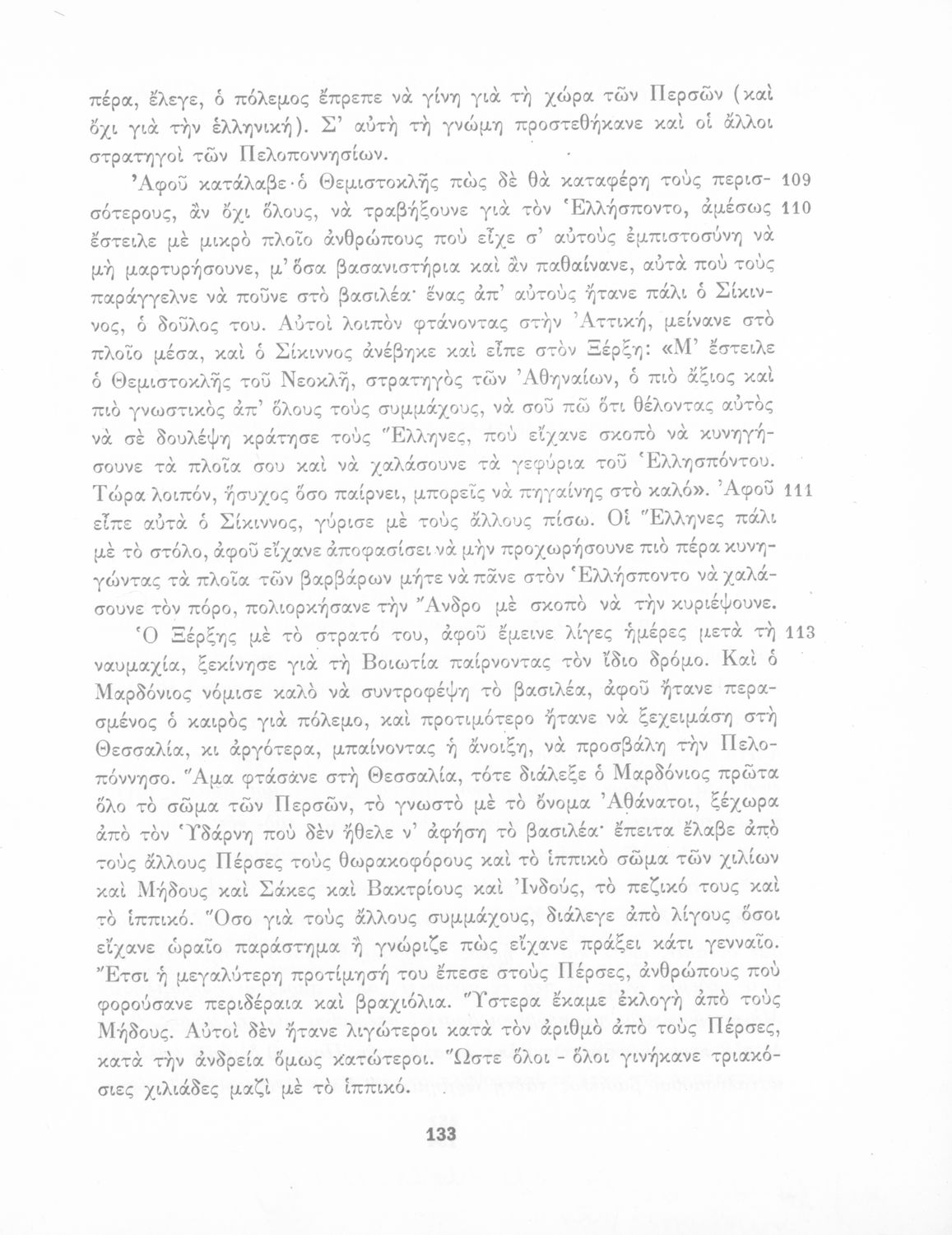 Σχολικό εγχειρίδιο Αρχαίων Ελληνικών Γυμνασίου που περιέχει αποσπάσματα από το έργο του Ηρόδοτου Περσικοί Πόλεμοι, μετάφραση, εισαγωγή στη ζωή και το έργο του, και ερμηνευτικά σχόλια. Περιλαμβάνει παράρτημα με