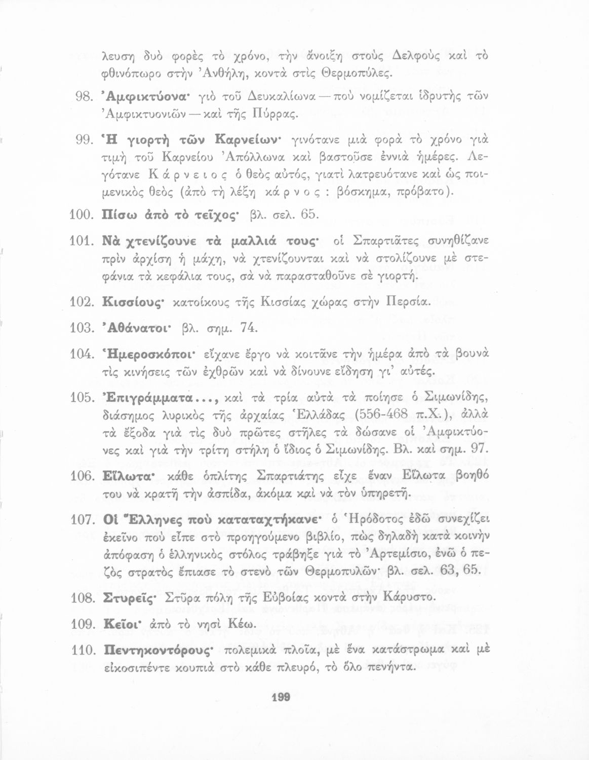 Σχολικό εγχειρίδιο Αρχαίων Ελληνικών Γυμνασίου που περιέχει αποσπάσματα από το έργο του Ηρόδοτου Περσικοί Πόλεμοι, μετάφραση, εισαγωγή στη ζωή και το έργο του, και ερμηνευτικά σχόλια. Περιλαμβάνει παράρτημα με