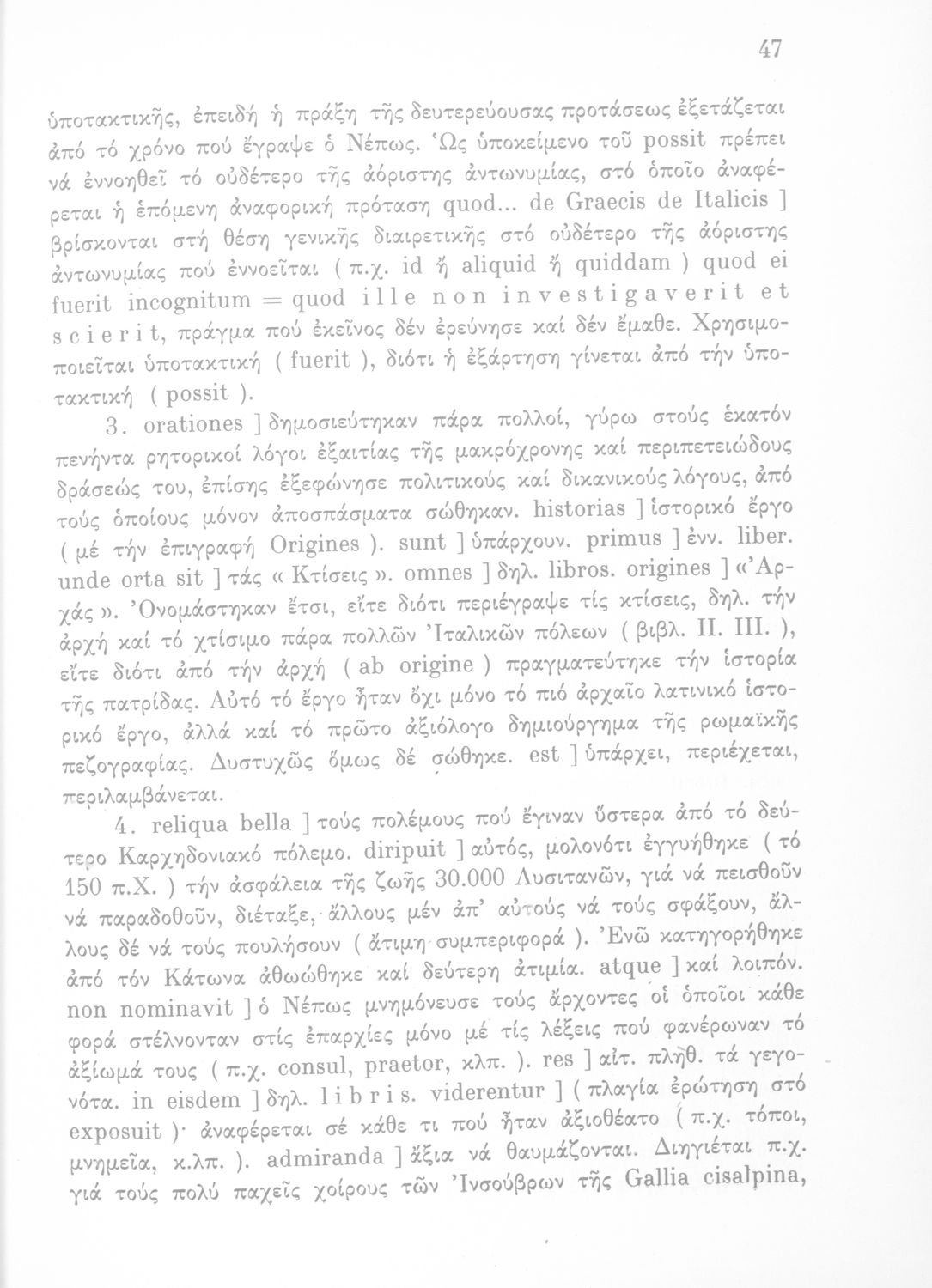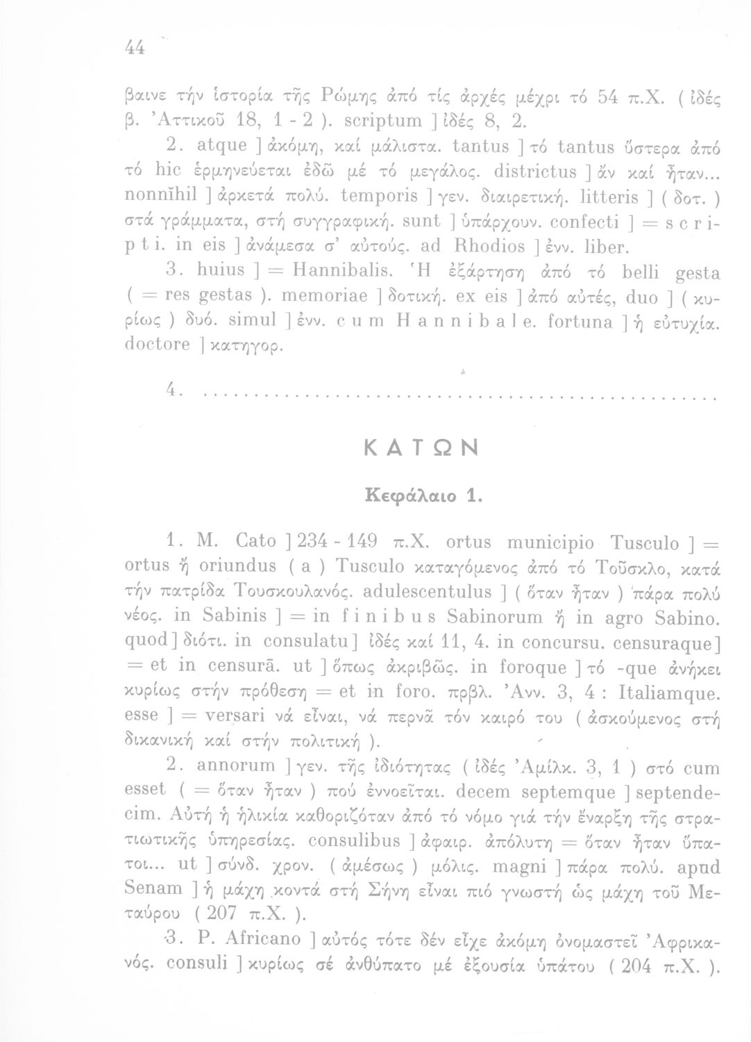 Σχολικό εγχειρίδιο Λατινικών Β΄ Λυκείου που περιέχει σύντομο βιογραφικό σημείωμα του Νέπωτα, αποσπάσματα από τα έργα Αμίλκας, Αννίβας, Κάτων και Αττικός, ιστορικό και γεωγραφικό πίνακα και λεξιλόγιο. Ο συγγραφέας ήταν ακαδημαϊκός και ομότιμος καθηγητής της Λατινικής Φιλολογίας στο Πανεπιστήμιο Αθηνών.