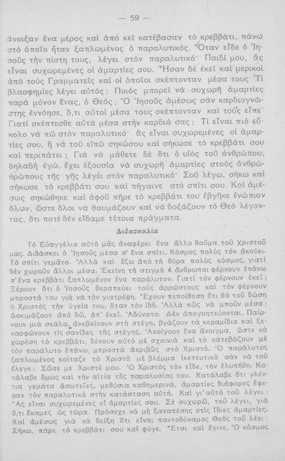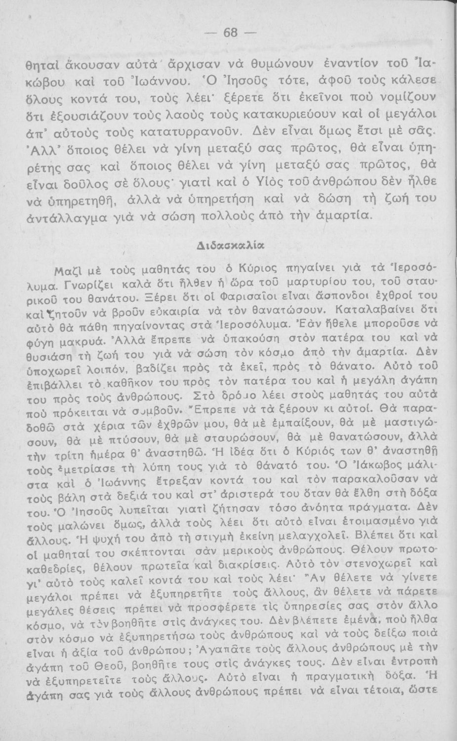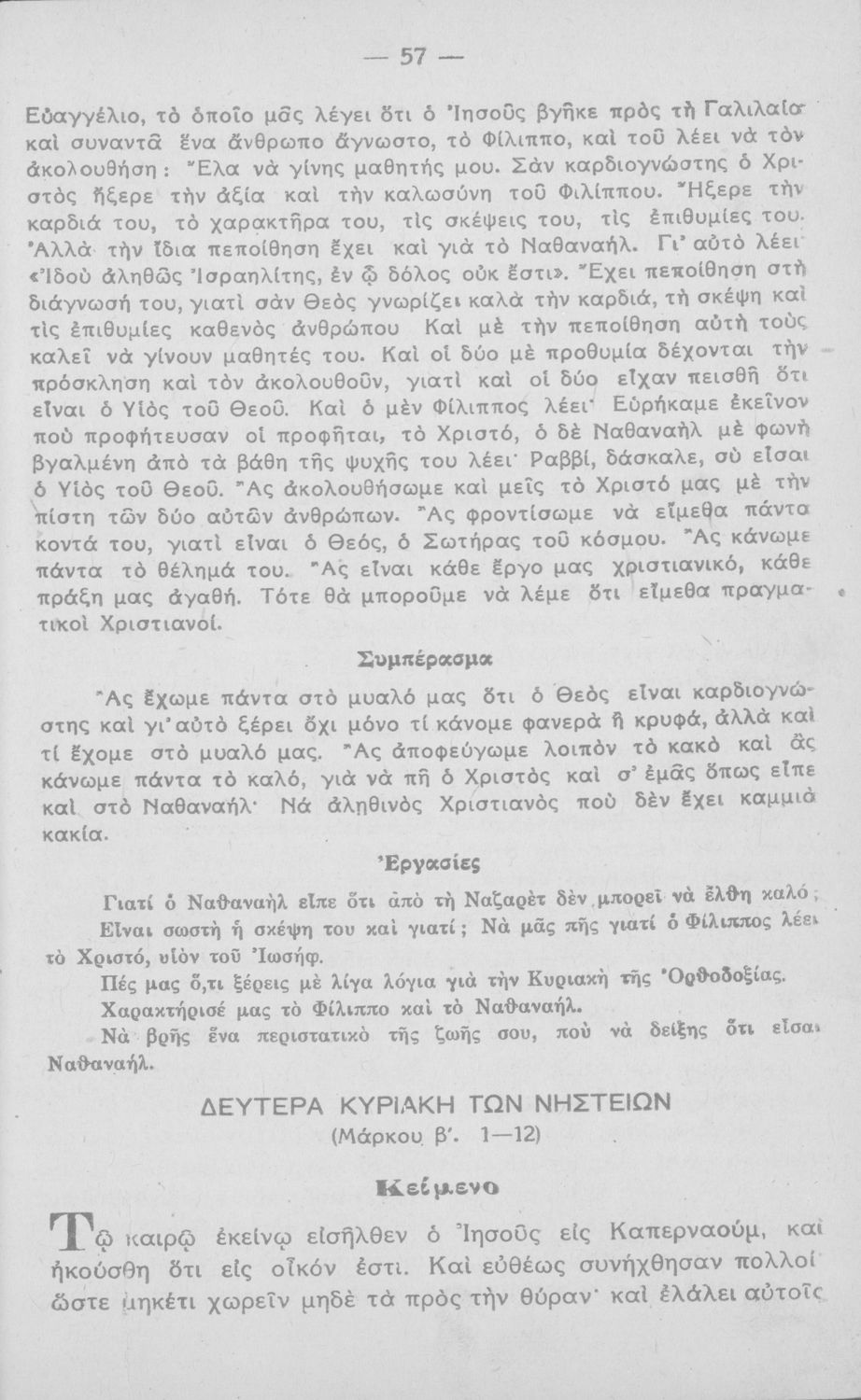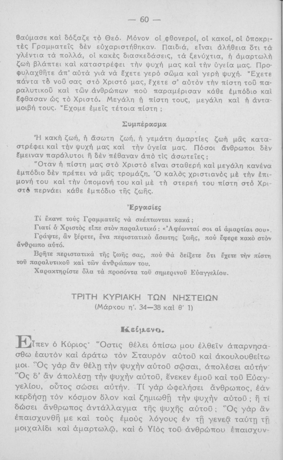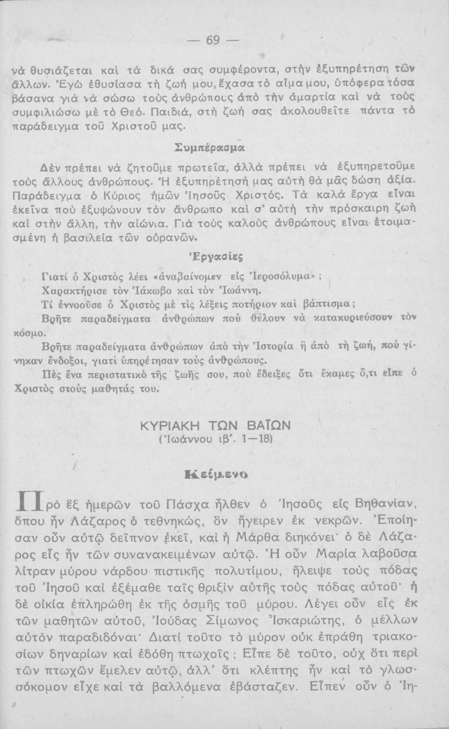 Το σύγγραμμα ήταν μαθητικό βοήθημα για το μάθημα των Θρησκευτικών. Περιέχει κείμενο, σχόλια των Ευαγγελίων