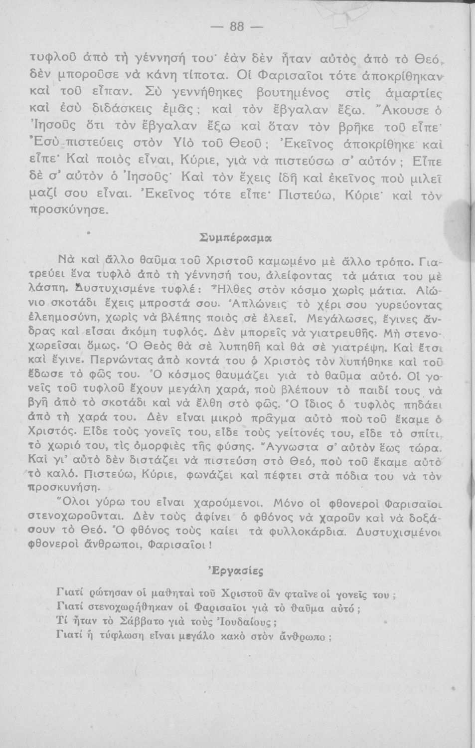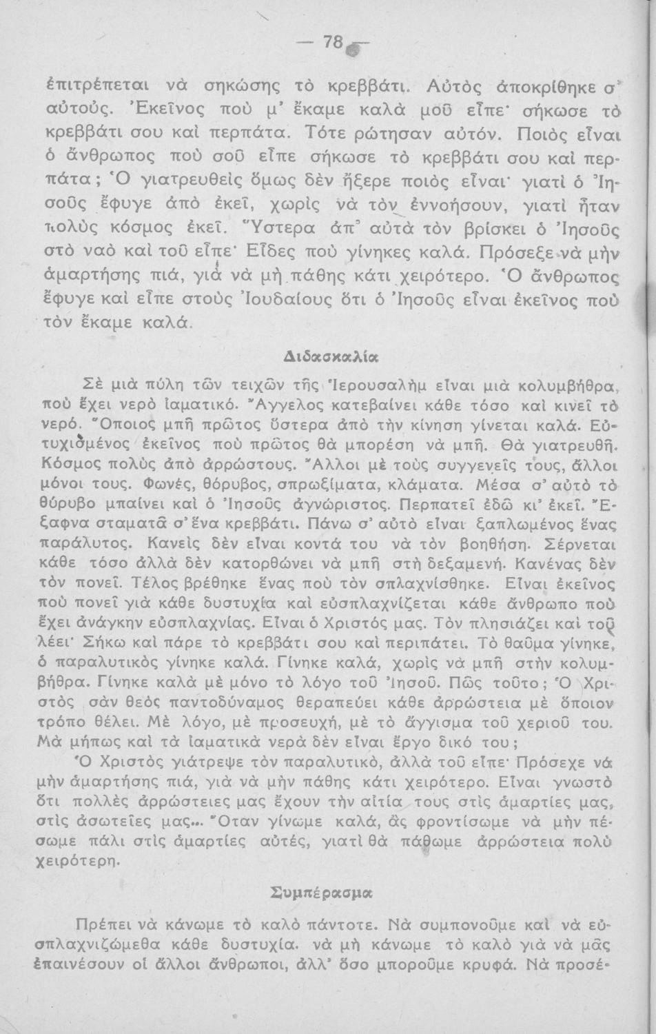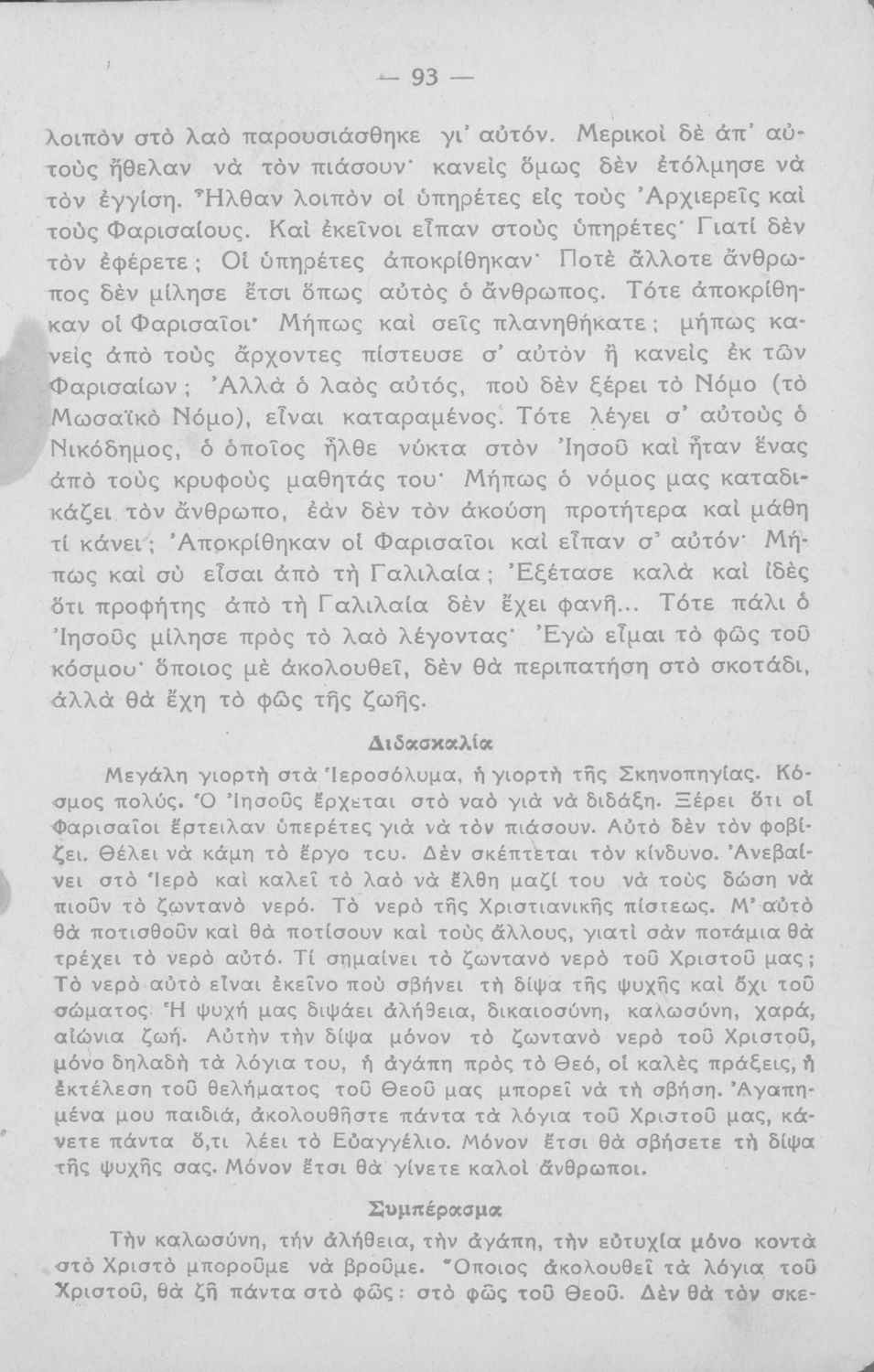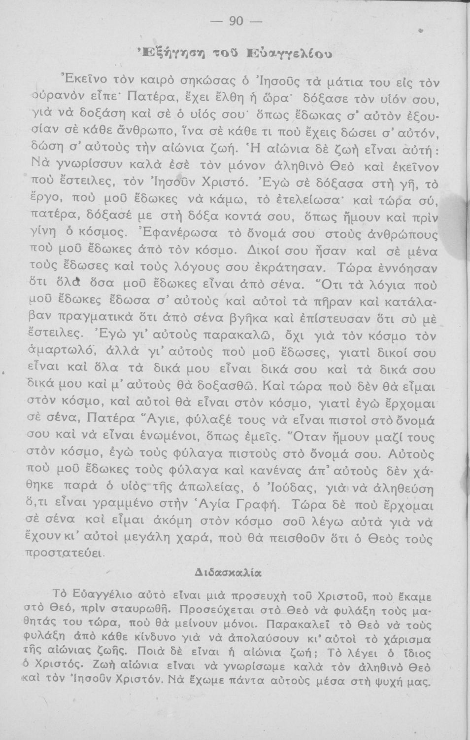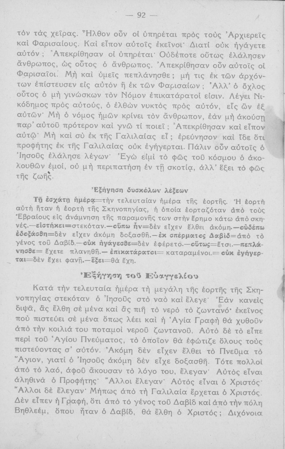Το σύγγραμμα ήταν μαθητικό βοήθημα για το μάθημα των Θρησκευτικών. Περιέχει κείμενο, σχόλια των Ευαγγελίων