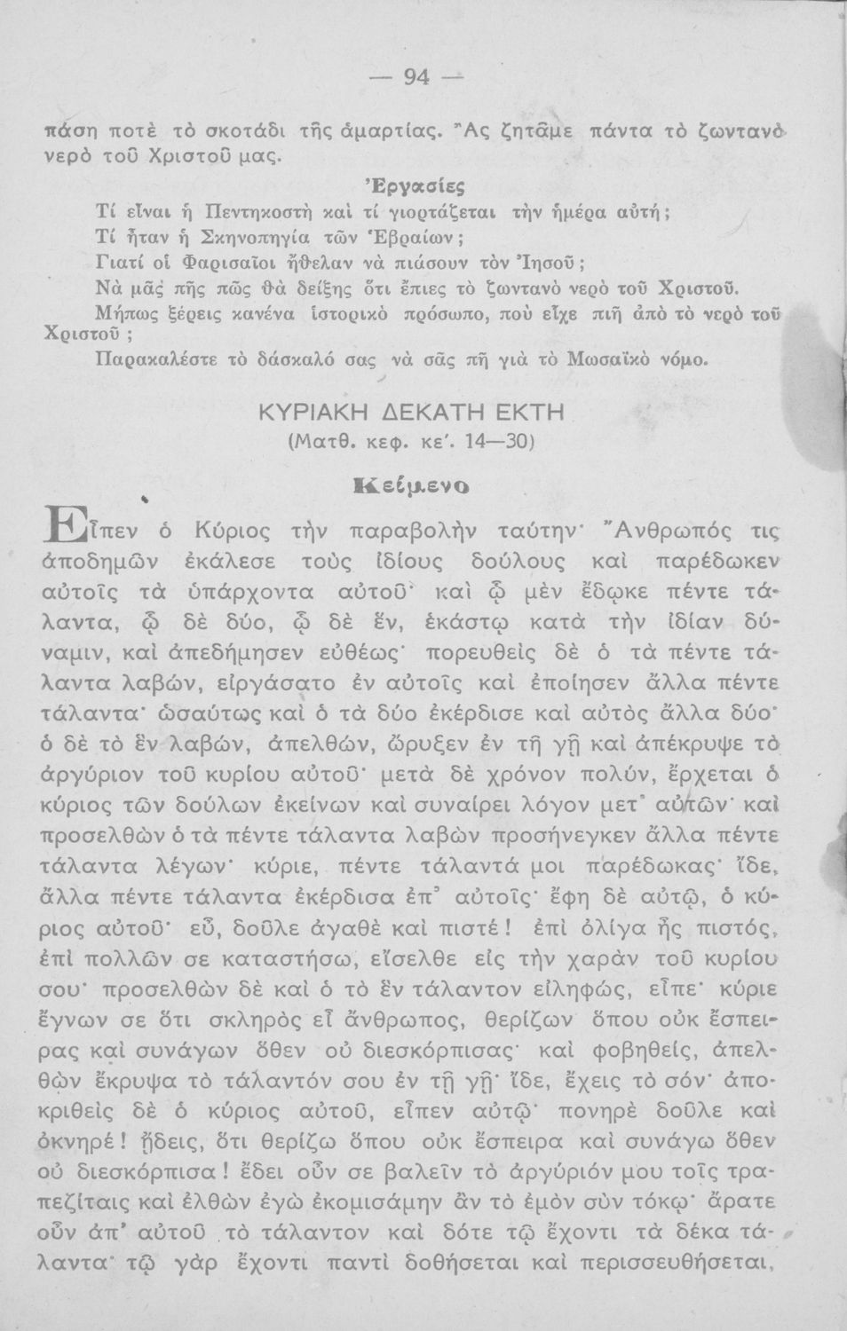 Τίτλος: Περικοπαί Ευαγγελίων των Κυριακών του Σχολικού έτους