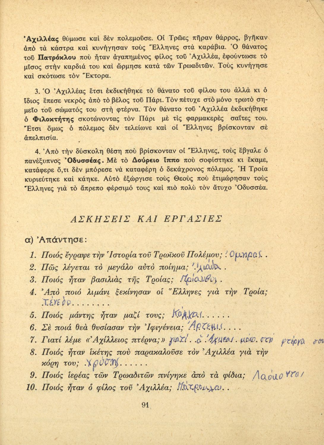 Ιστορία. Μυθικά χρόνια για την Γ΄ τάξι του Δημοτ. Σχολείου