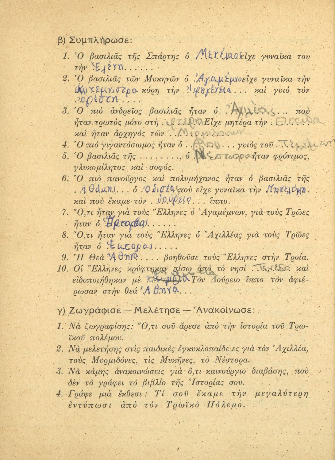 Μαθητικό βοήθημα Ιστορίας Γ΄ Δημοτικού που περιέχει θέματα από την ελληνική μυθολογία.