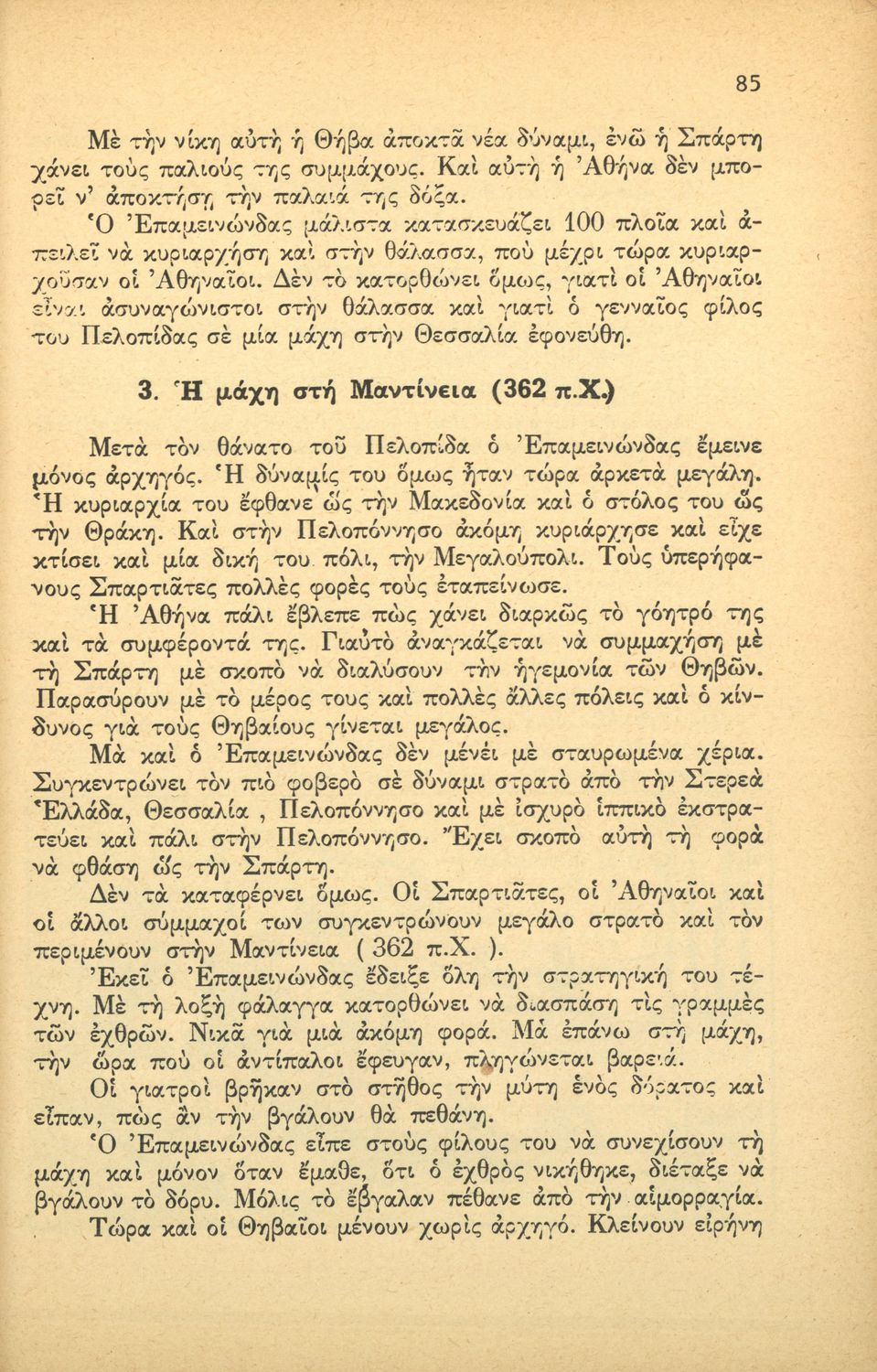Μαθητικό βοήθημα Ιστορίας. Γ΄ και Δ΄ Δημοτικού Παρθεναγωγείου που καλύπτει το διάστημα από τους προϊστορικούς χρόνους ως τη μάχη της Μαντίνειας
