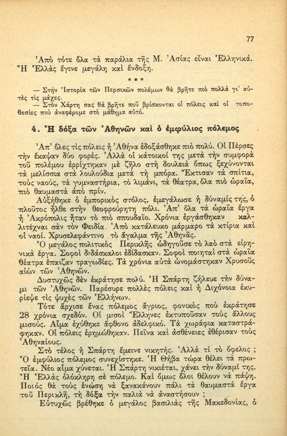 Μαθητικό βοήθημα Ιστορίας Γ΄ και Δ΄ Δημοτικού που καλύπτει την περίοδο από την κάθοδο των Δωριέων ως την ηγεμονία των Θηβών. Περιέχει και στοιχεία μυθολογίας.