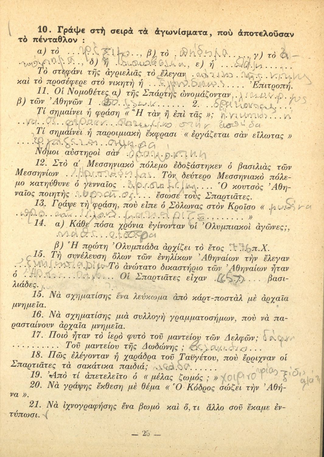 Τάξη:  Γ' Δημοτικού / Δ' Δημοτικού / Παρθεναγωγείο